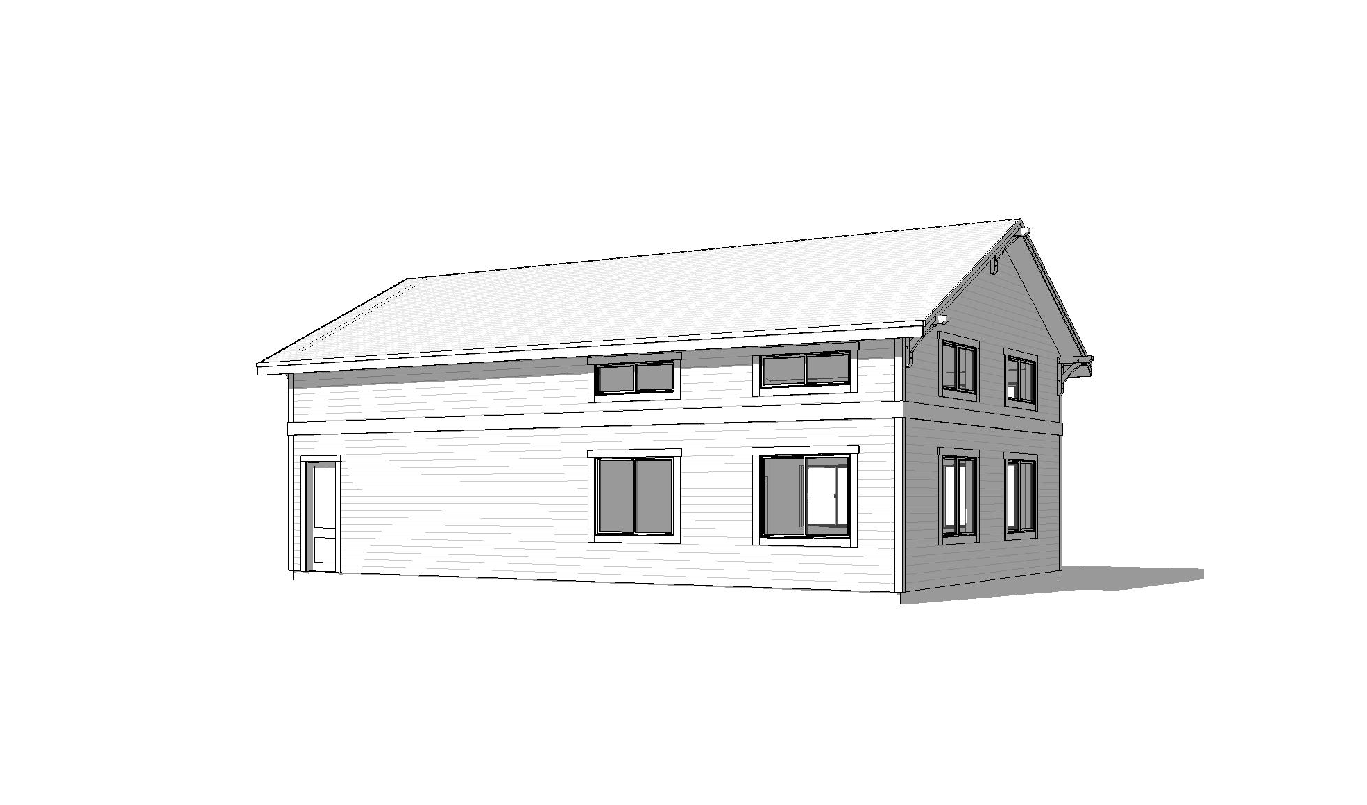 clean modern barndominium architectural exterior home rendered in cinematic vibrant golden hour lighting with blue skies and vibrant clouds barndominium in a lush beautiful forest setting with green grass and dense trees surrounding the property warm glow and reflections off of the windows select grade horizontal white hardie siding green manicured landscape around structure with gardens and grass black standing seam metal roof high fidelity photorealistic visualization crisp shadow falloff refined facade geometry soft atmospheric depth premium architectural photography mood ultra clean composition and materials photorealistic render black trim around the windows and doors prominent trees scattered around the property black window trim and posts black man door