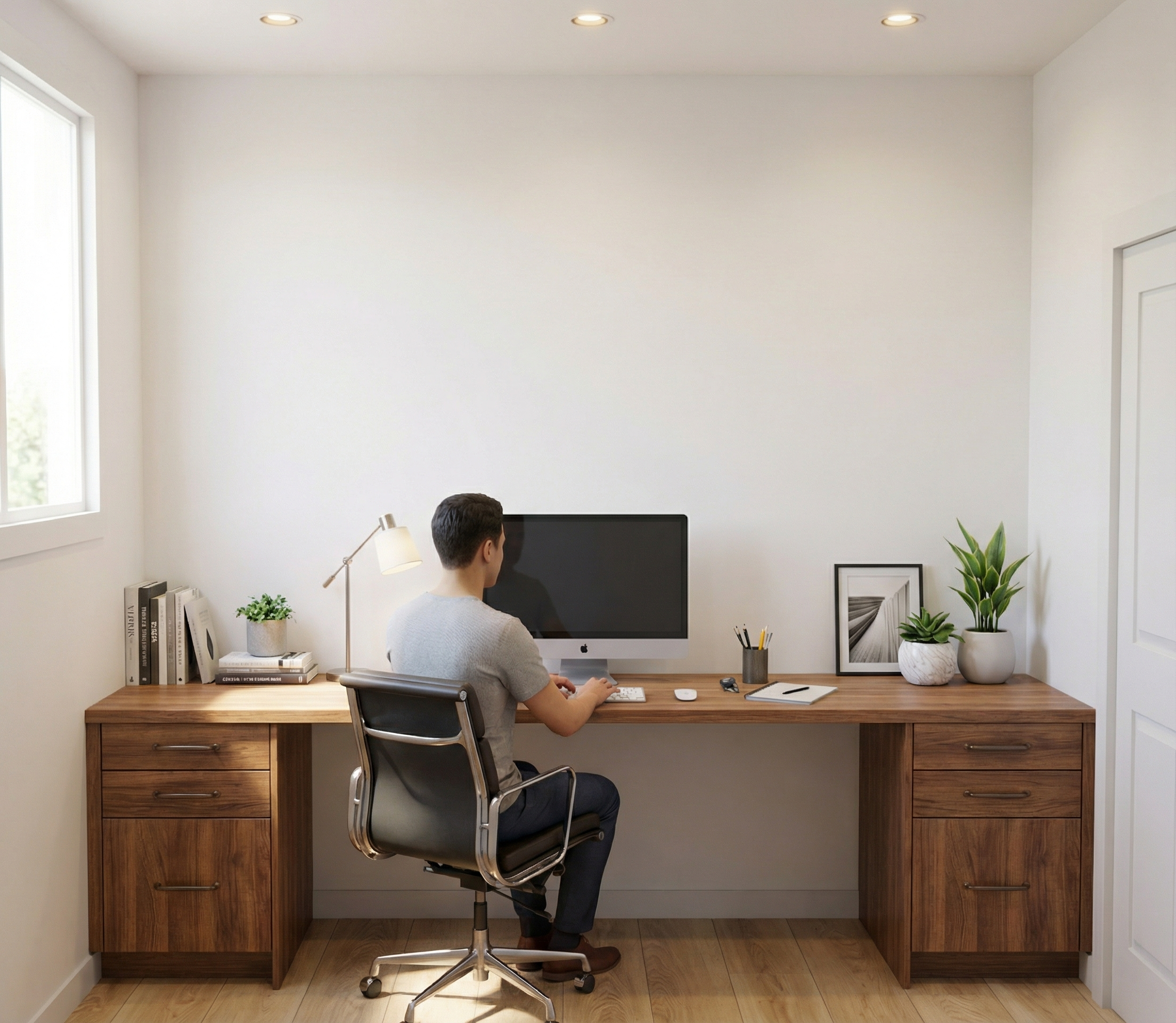black and white pen sketch on white paper add a lady sitting in an eames chair reading a book fire in the fireplace vase of tulips above the fireplace all black and white no color view of the street through the big window on the left and the small window on the right with neighbors outside walking a dog book on the coffee table round rug under the coffee table only one coffee table