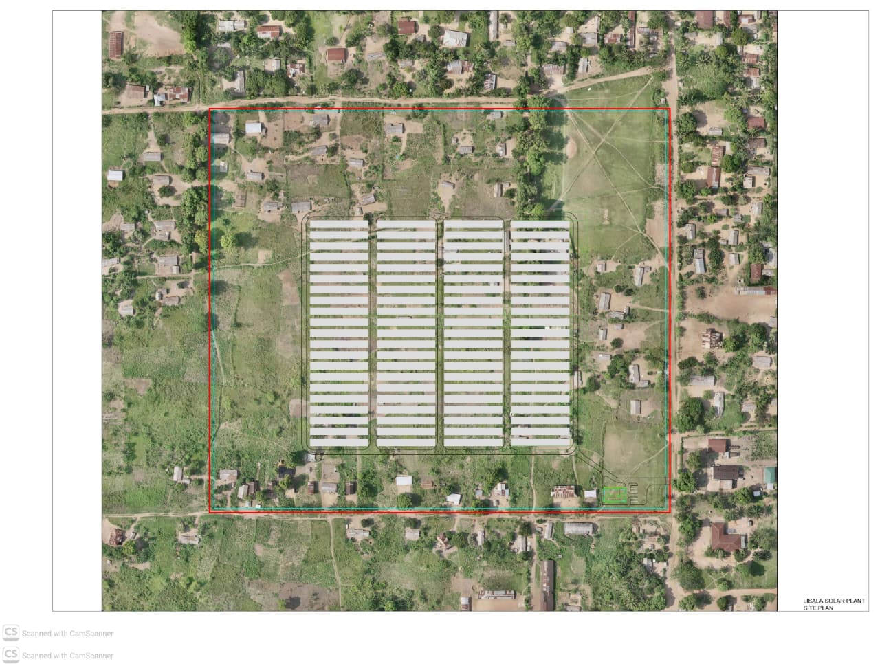modernist exterior shot it is a solar plant in a village in lisala drc i need a perspective view of the solar plant together with landscape and substation use the surroundings from the orthophoto provided there are also fences architecture