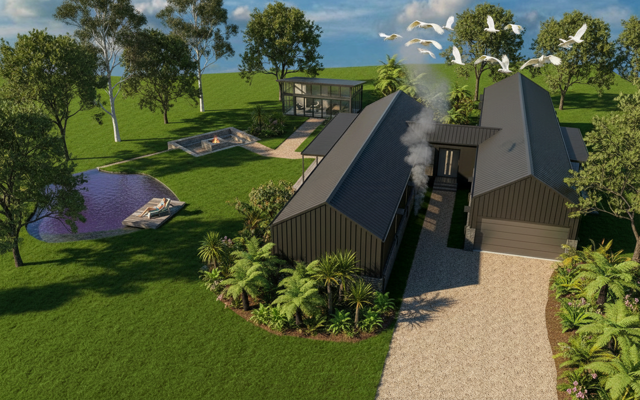remet moi du canexel gris pale toiture en bardeau en arriere ajouter amenagement plantes ajouter balcon beton