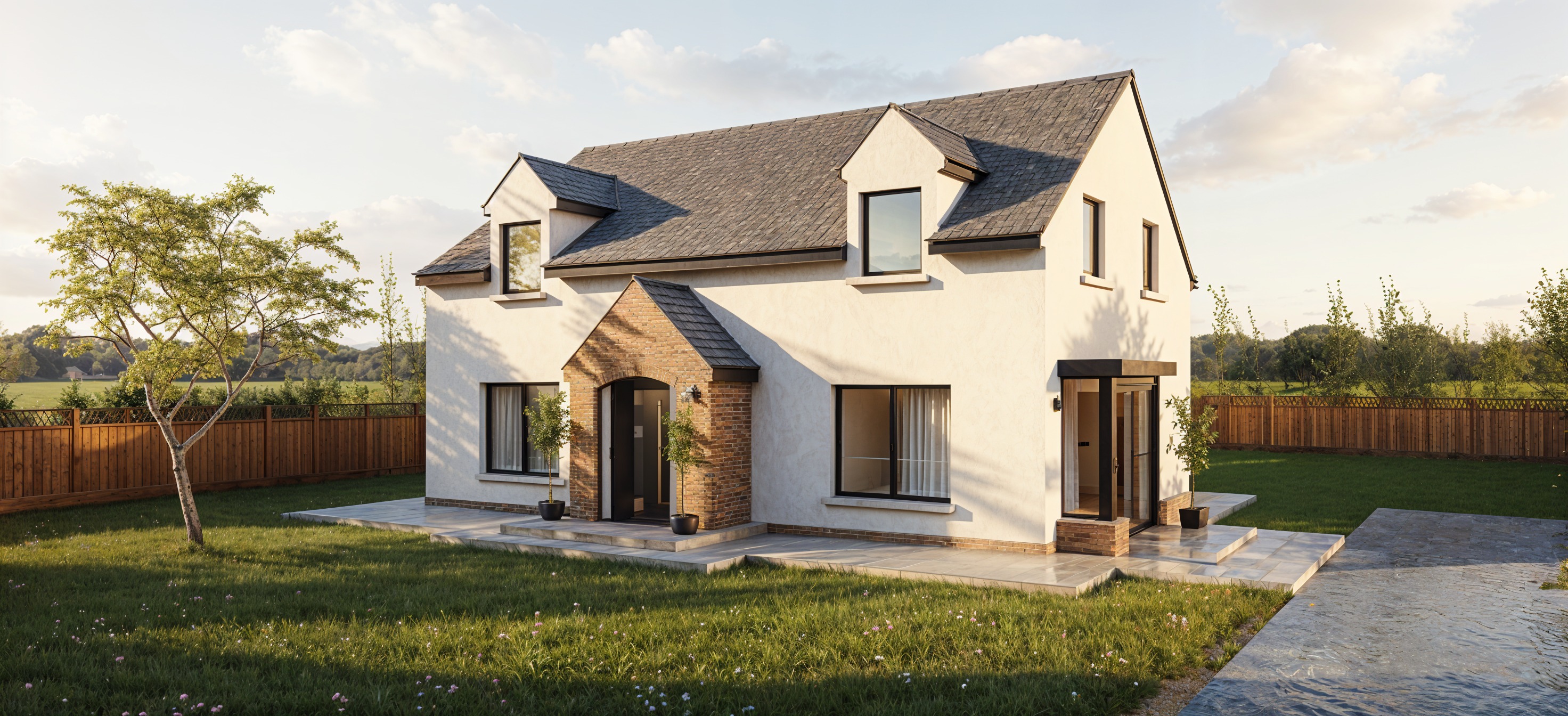i would like to keep this image as it is please but add in some people a car and maybe some additional planting to the rear of the property