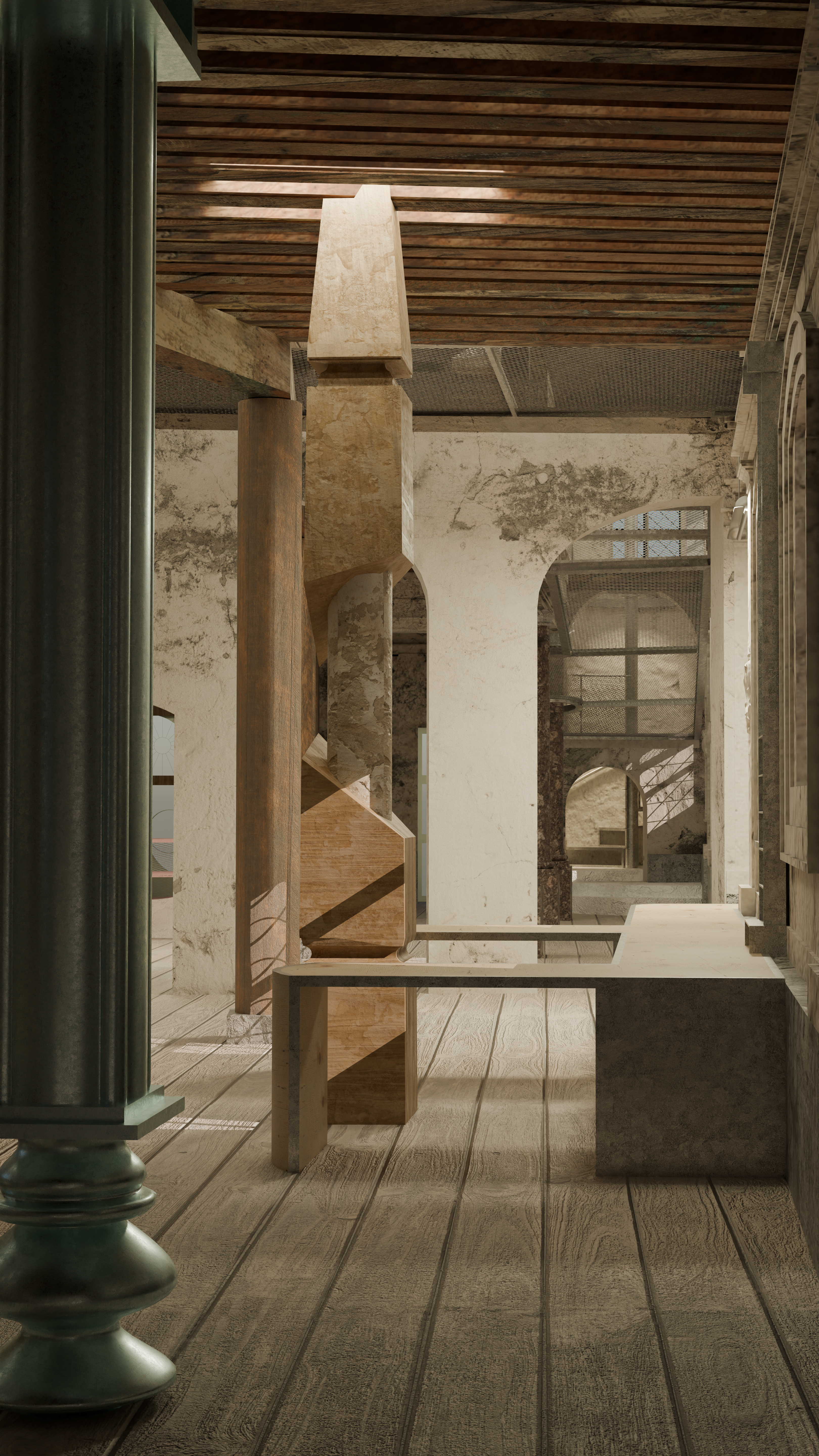 make only wood black white outline architecture and the furniture should stay as is are in the color and put many peopele inside that match the color its a workshop put tools on tabels the furniture should stay in color and matrial