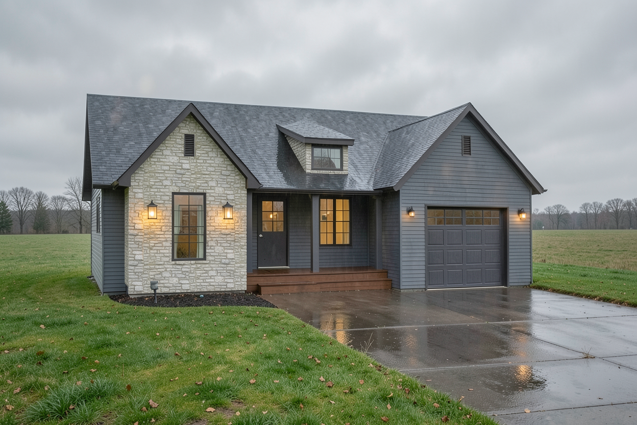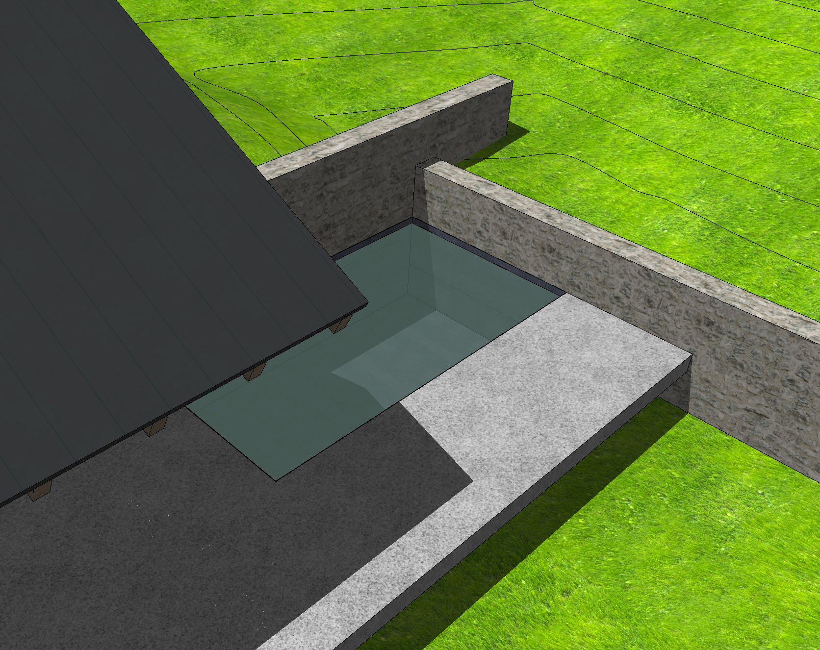 andscape hillside with sagebrush and tall wild grasses brown drystack stone walls corten standing seam metal roof