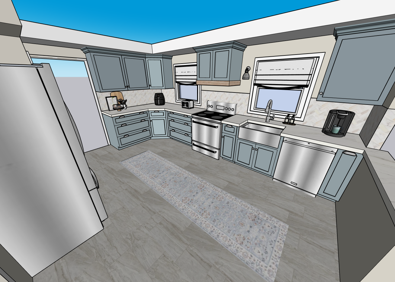 create realistic photo rendering of my 3 d sketch up image add ceiling with recessed lighting