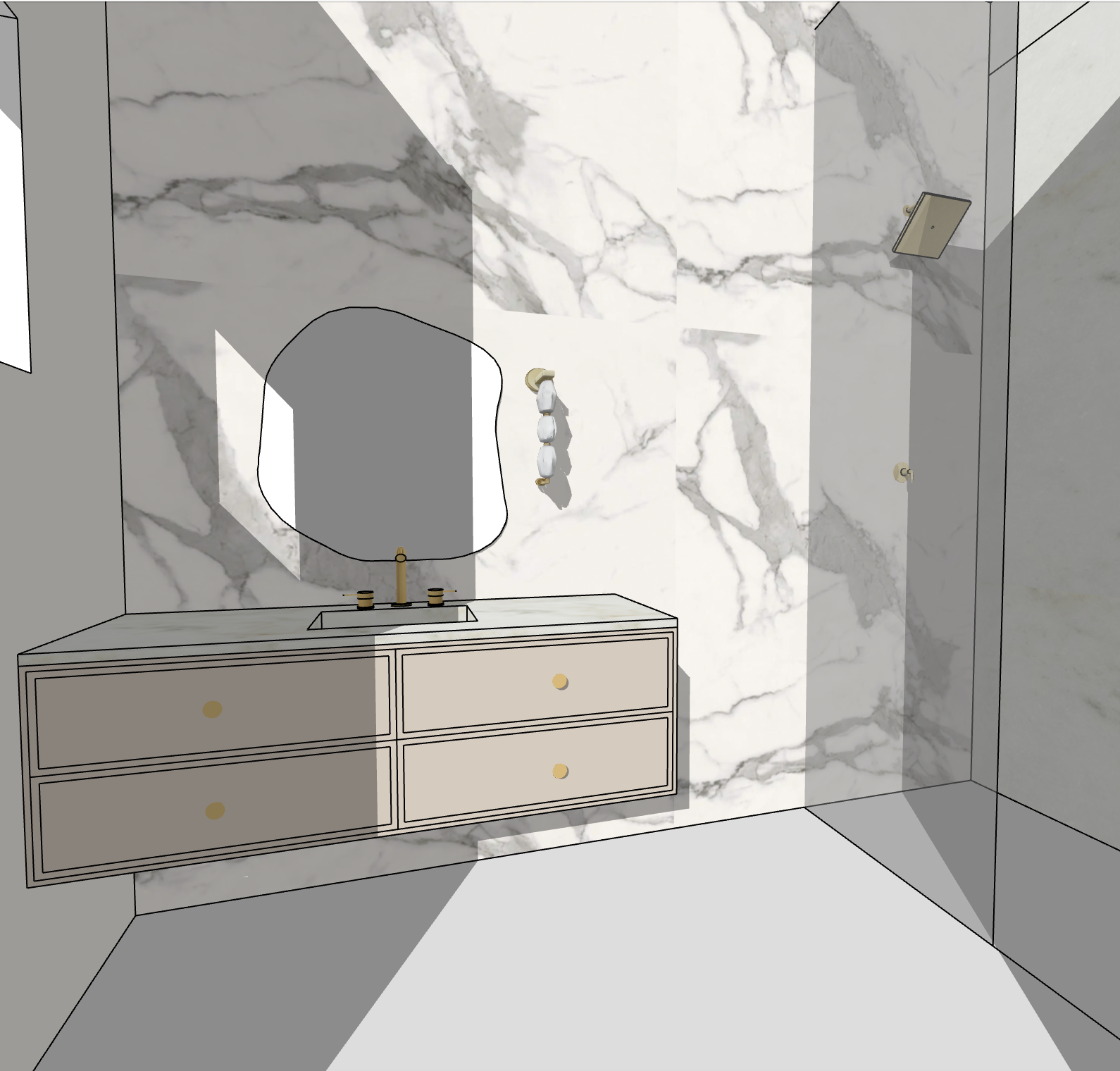 make the base of the vanity a light cashmere beige and make the mirror led