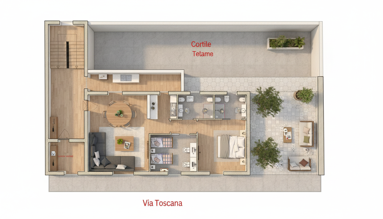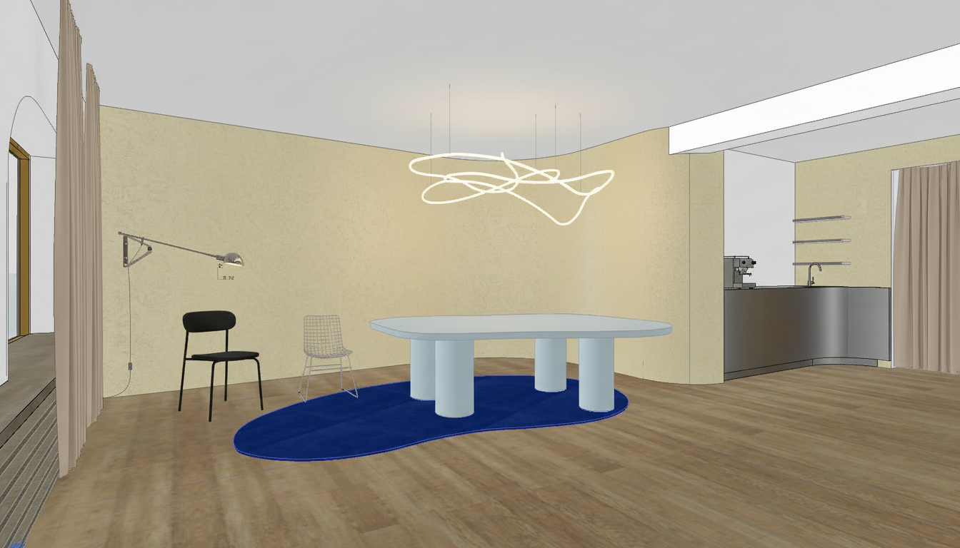 keep the exact same geometry of the building and the same camera angle and view replace the facade materials with a natural light yellwo brick and place the building in a lush park landscape