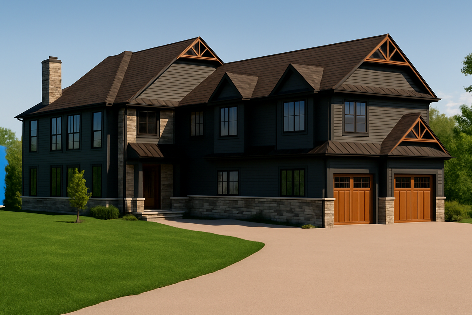 keep the original architecture exactly as it is no changes to the structure proportions or materials of the building produce a high quality photorealistic rendering showing the existing fa ade with its authentic character preserved add only detailed and realistic visual enhancements to the storefront a modern public plaza setting with the original building in the background featuring its beige walls and wooden overhanging roof unchanged the scene is lively with people interacting with the space sky is clear blue with soft clouds trees and bushes surround the area in the storefront add refined details visible through the glass a p tisserie inside with a clean elegant counter pastry display cakes viennoiseries and a small bank accueil area maintain full transparency and realistic reflections on the glass materials must look natural lighting warm late afternoon ambiance 8k photorealistic quality