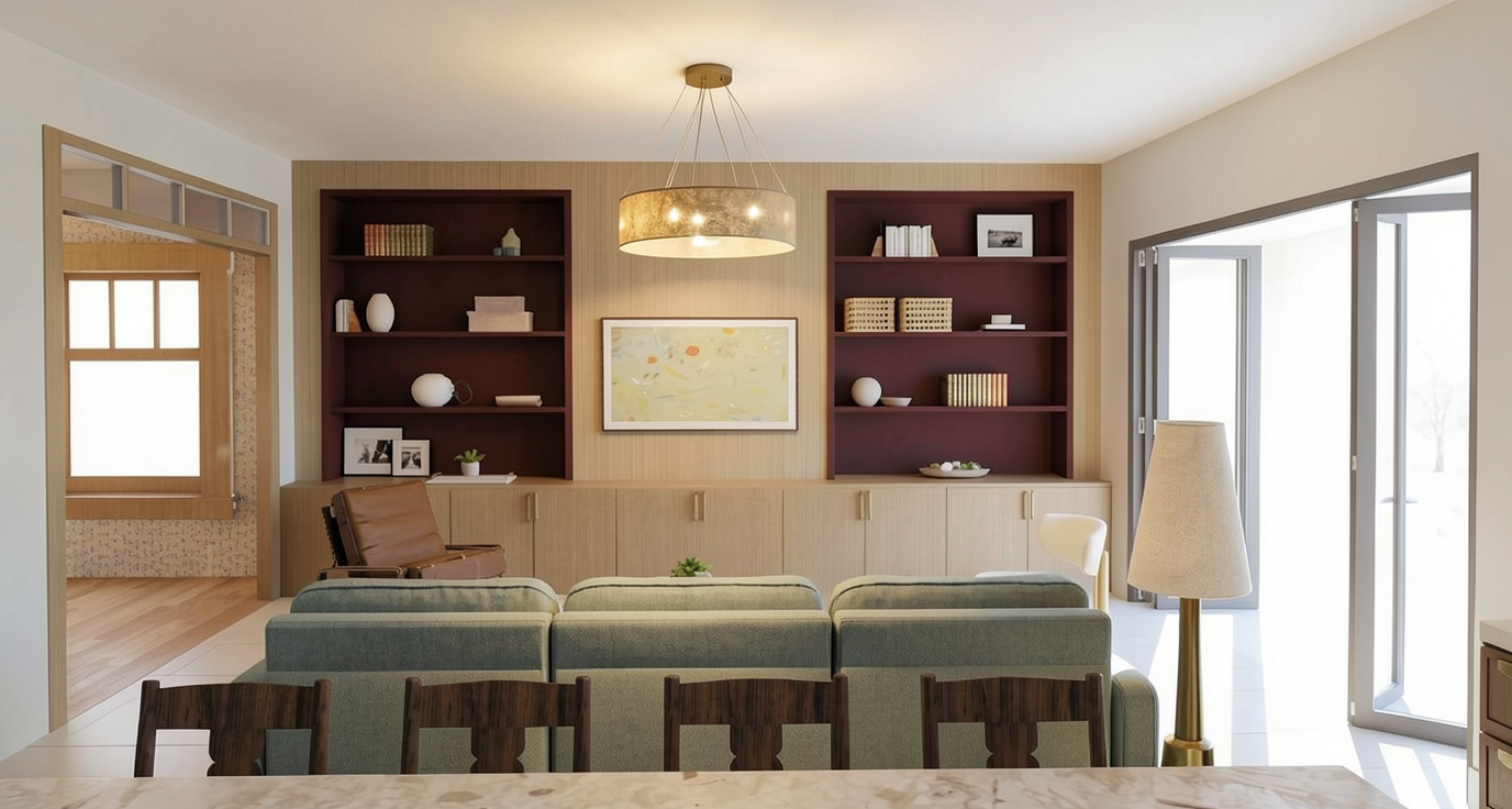 contemparary house with stone walls in the lower lever and coloured concrete on the uper levels black painted iron doors for the entrance en the garagge