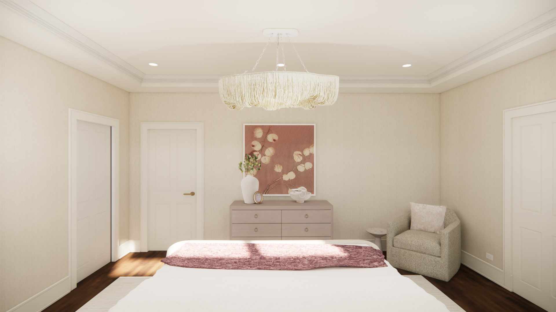 enhance this render to look more realistic improve lighting shadows reflections and material realism but do not add remove or alter any elements objects or materials keep everything exactly the same just make it more photorealistic please make it bright do not change the hardware of the dresser