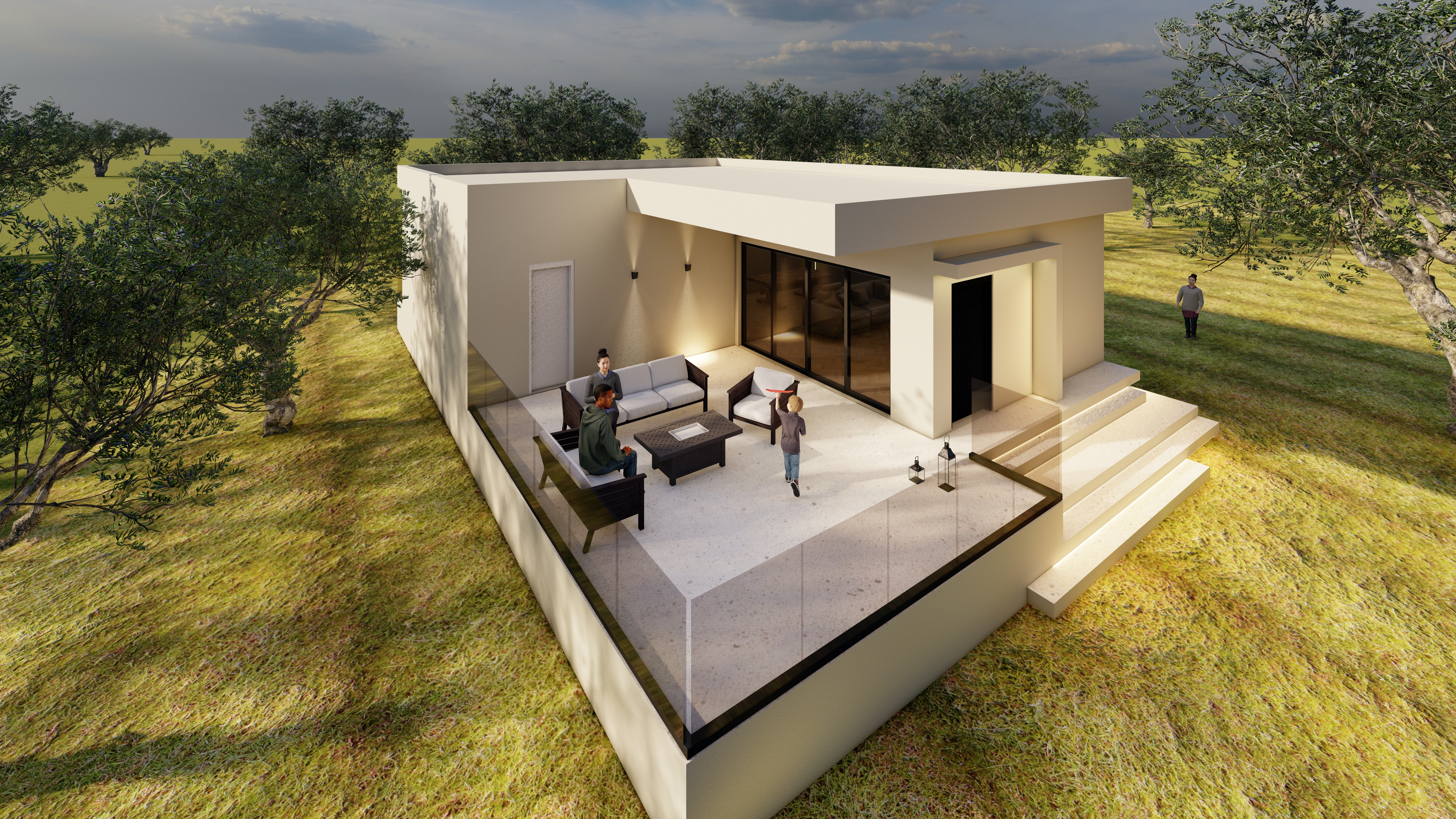 improve the photo make it natural and luxurious add handles in the doors add warm interior light and rular information n the backeground