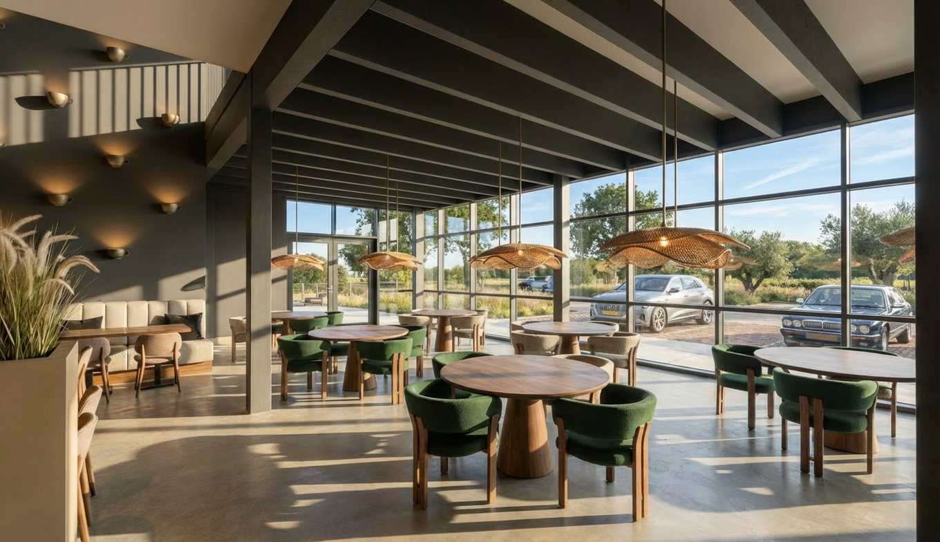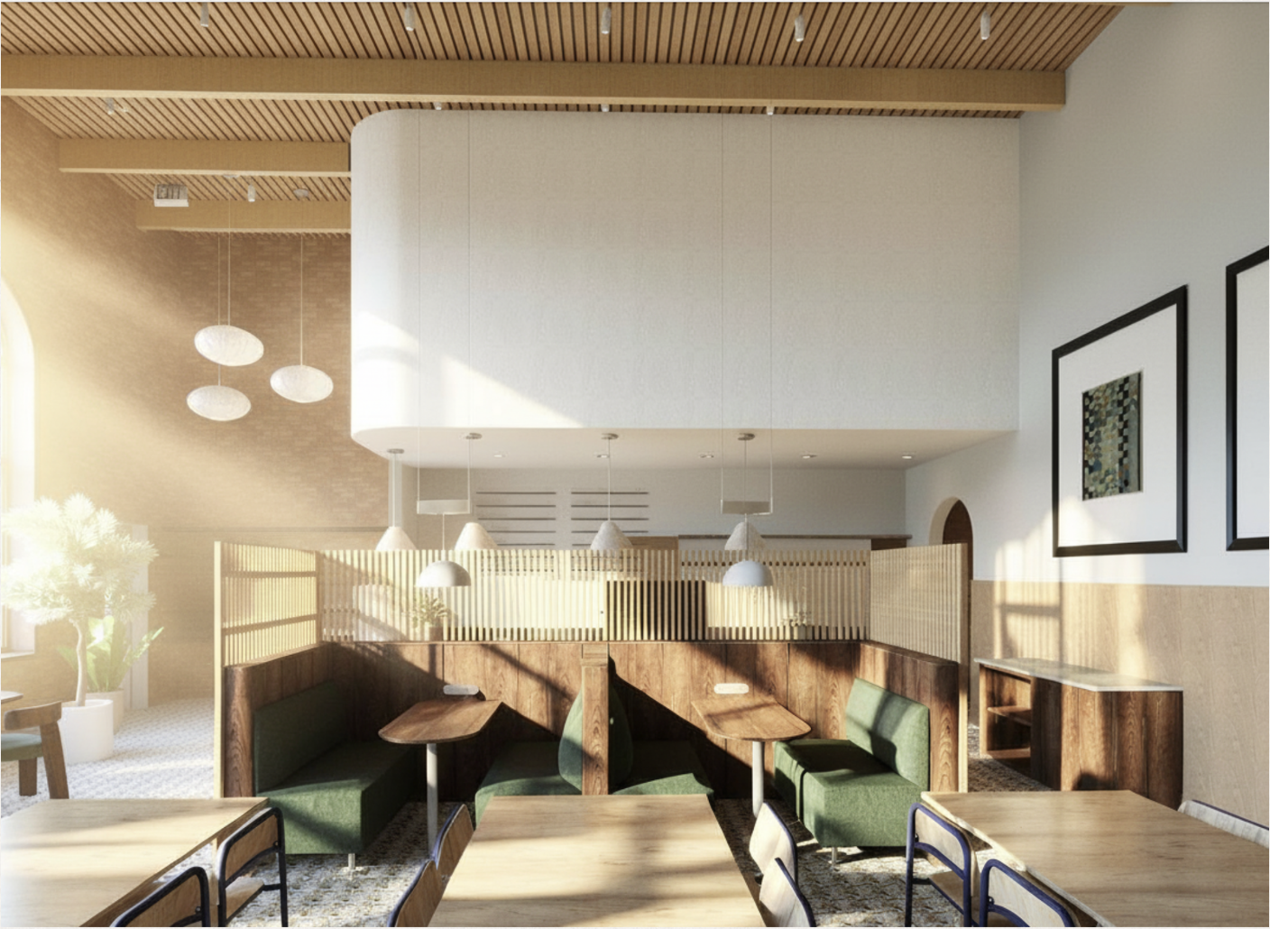 add some people sitting at the tables working and visiting and having coffee