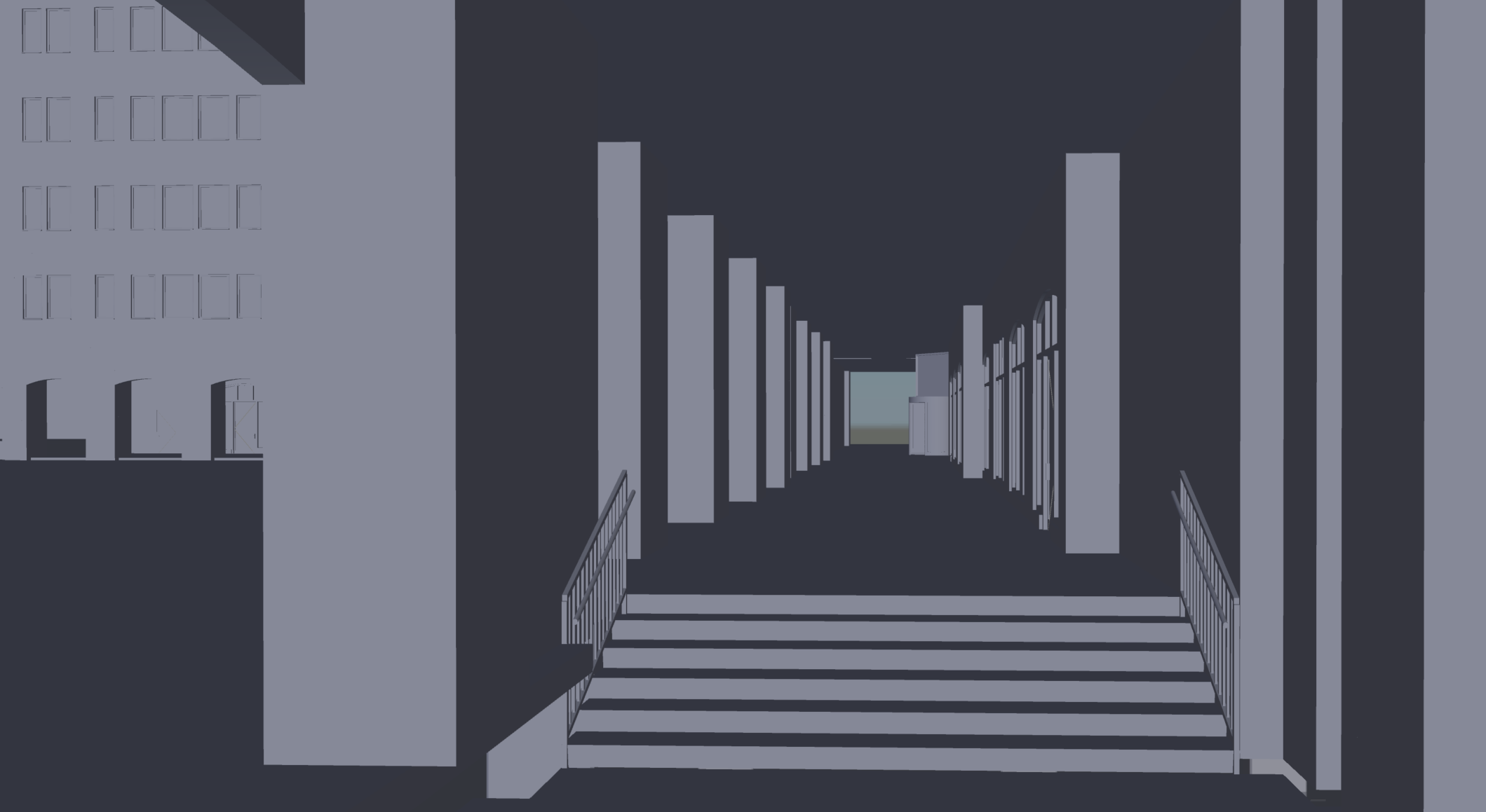 modernist exterior shot render this space as a modern colonade in a building constructed in a stamford ct suburb architecture