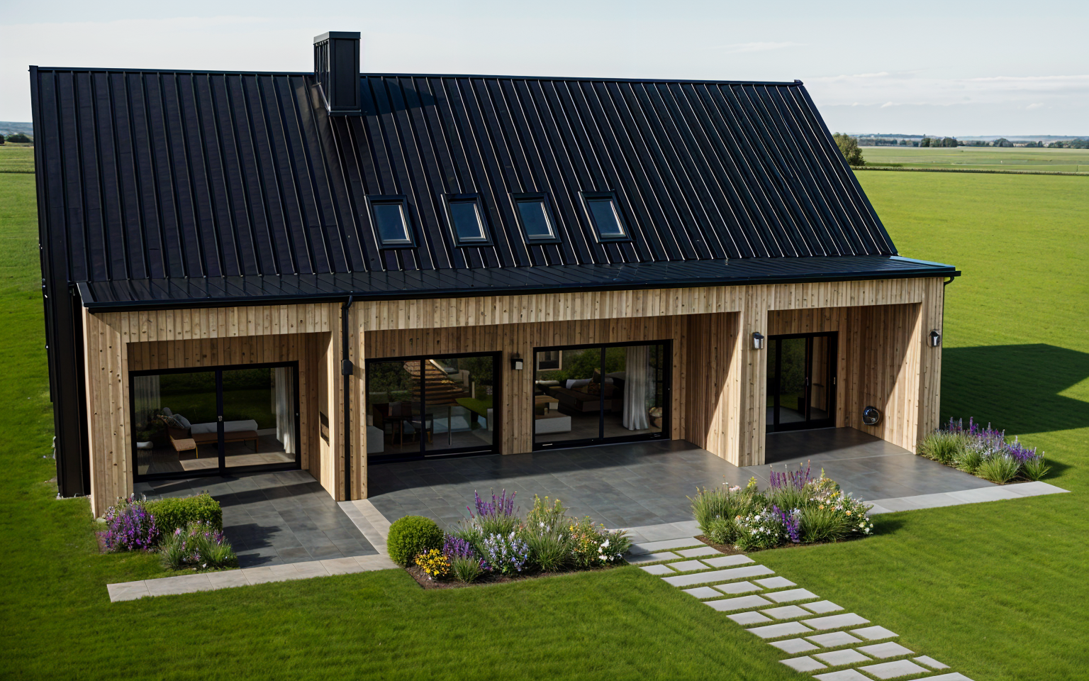 perspective shot create a dusk visualization scene for this photo architecture