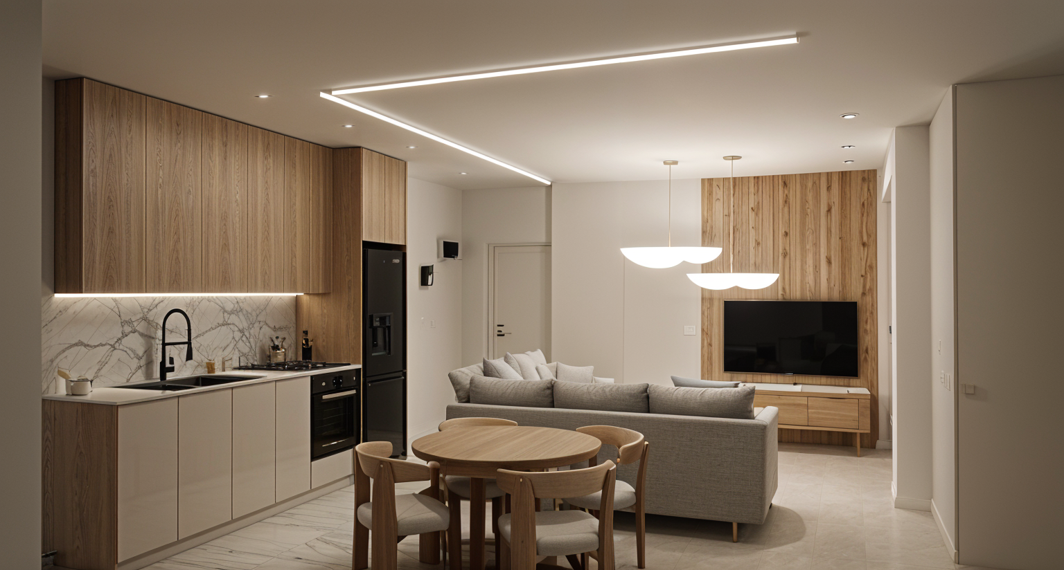 ultra high detail photorealistic architectural rendering lifelike materials rich textures stunning 8k resolution professional color grading sharp focus cinematic quality extremely bright and vibrant lighting overhead skylight illumination abundant natural light evenly distributed light linear led ceiling fixture preserved and brightly illuminated realistic photography taken with a professional dslr camera magazine cover quality