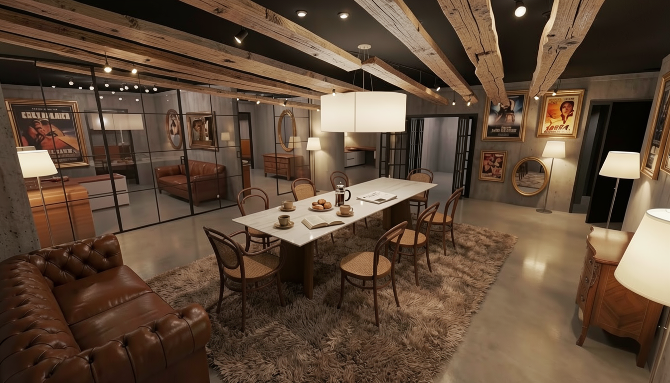 image type hyper realistic interior architectural render editorial style scene framing close up interior view maintain exactly the same crop composition and camera position as the reference image eye level perspective neutral lens 35 50mm no distortion main elements partial view of built in wardrobe vanity drawer circular mirror textile wall wood herringbone floor and pouf edge do not modify layout or proportions materials consistent with previous image refined realism floor wood herringbone natural wood parquet matte finish with soft subtle reflectivity fine grain realistic tonal variation no repetition artifacts wardrobe wood same tone as reference natural wood grain slightly irregular soft reflectivity low sheen never glossy surface must feel tactile slightly rough and natural eliminate any graphic or drawn outlines wardrobe edges very important remove black contour lines define edges only through natural shadow depth and material transitions soft realistic joints handles dark metal matte finish minimal reflection vanity wood same material language as wardrobe consistent tone and grain subtle realism no exaggerated texture wall textile continuous organic textile surface fine even texture warm beige tone slightly desaturated no seams or pattern repetition mirror circular mirror with subtle warm perimeter backlight soft halo effect integrated and elegant accurate reflection no distortion or overexposure pouf grey fabric pouf partially visible matte soft texture slightly darker tone natural volume through soft shading baseboard wall floor transition refined and clean junction between wall and floor minimal integrated baseboard or flush detail no visible gaps or graphic lines architectural and subtle lighting must remain unchanged preserve exactly the same lighting direction and contrast natural daylight with diagonal shadow crossing the scene no changes in intensity or mood mirror backlight remains subtle and secondary color atmosphere warm neutral palette wood tones beige textile soft greys calm editorial refined no saturation increase style editorial interior photography minimal elegant material driven poetic but restrained quality ultra realistic high resolution physically accurate materials pbr clean global illumination no noise no artifacts restrictions do not alter composition or crop do not introduce outlines or graphic edges do not exaggerate textures do not oversaturate colors