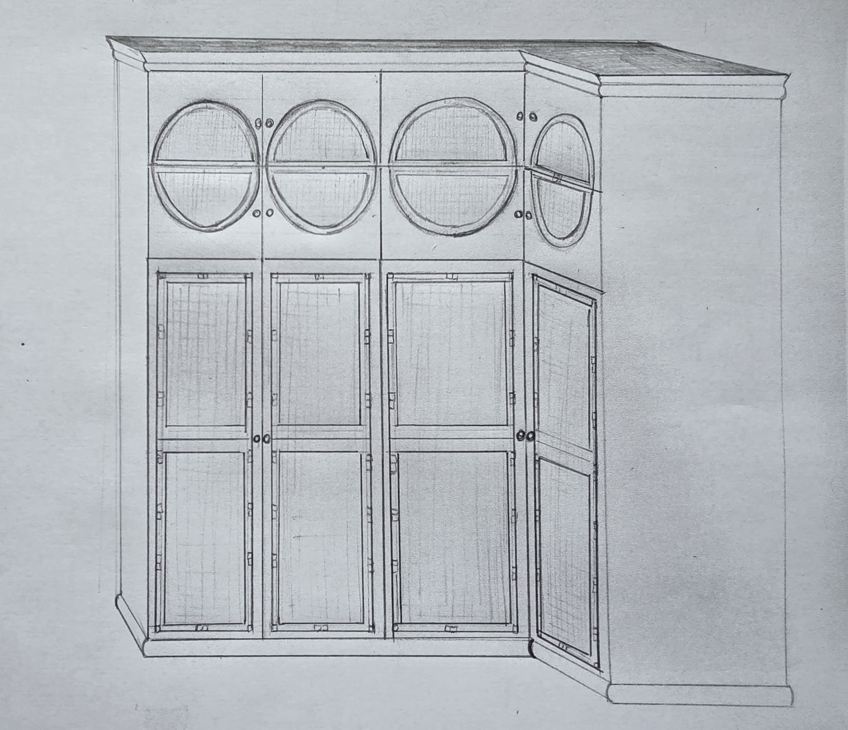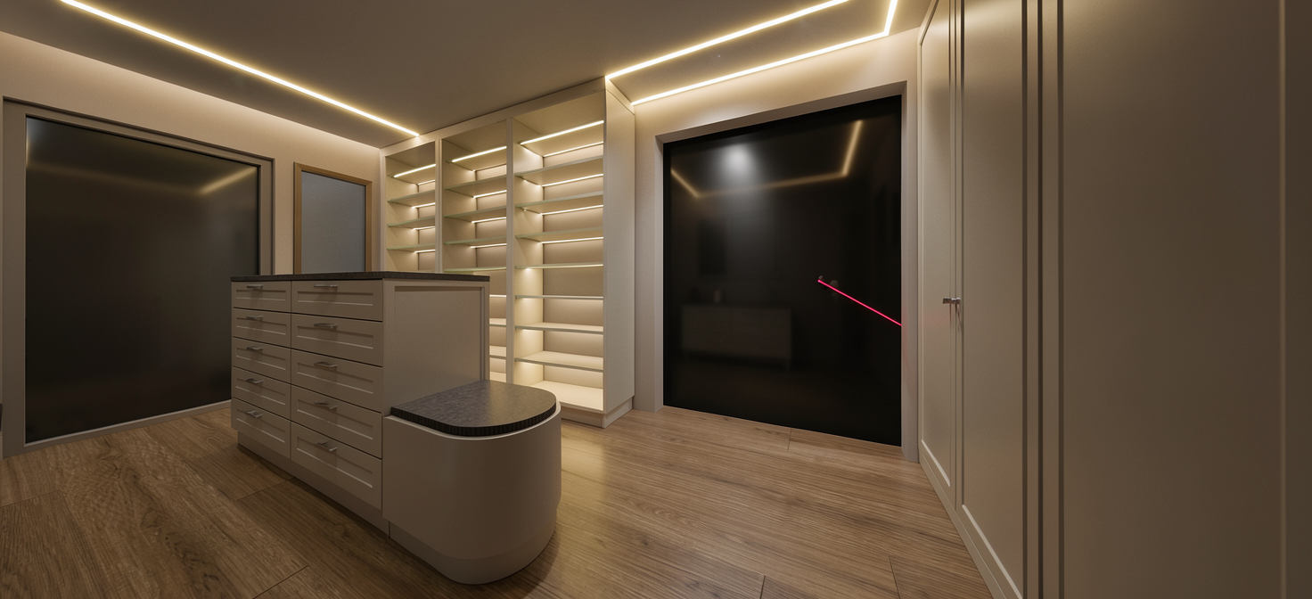 fai un render in bianco con specchi in shaker style