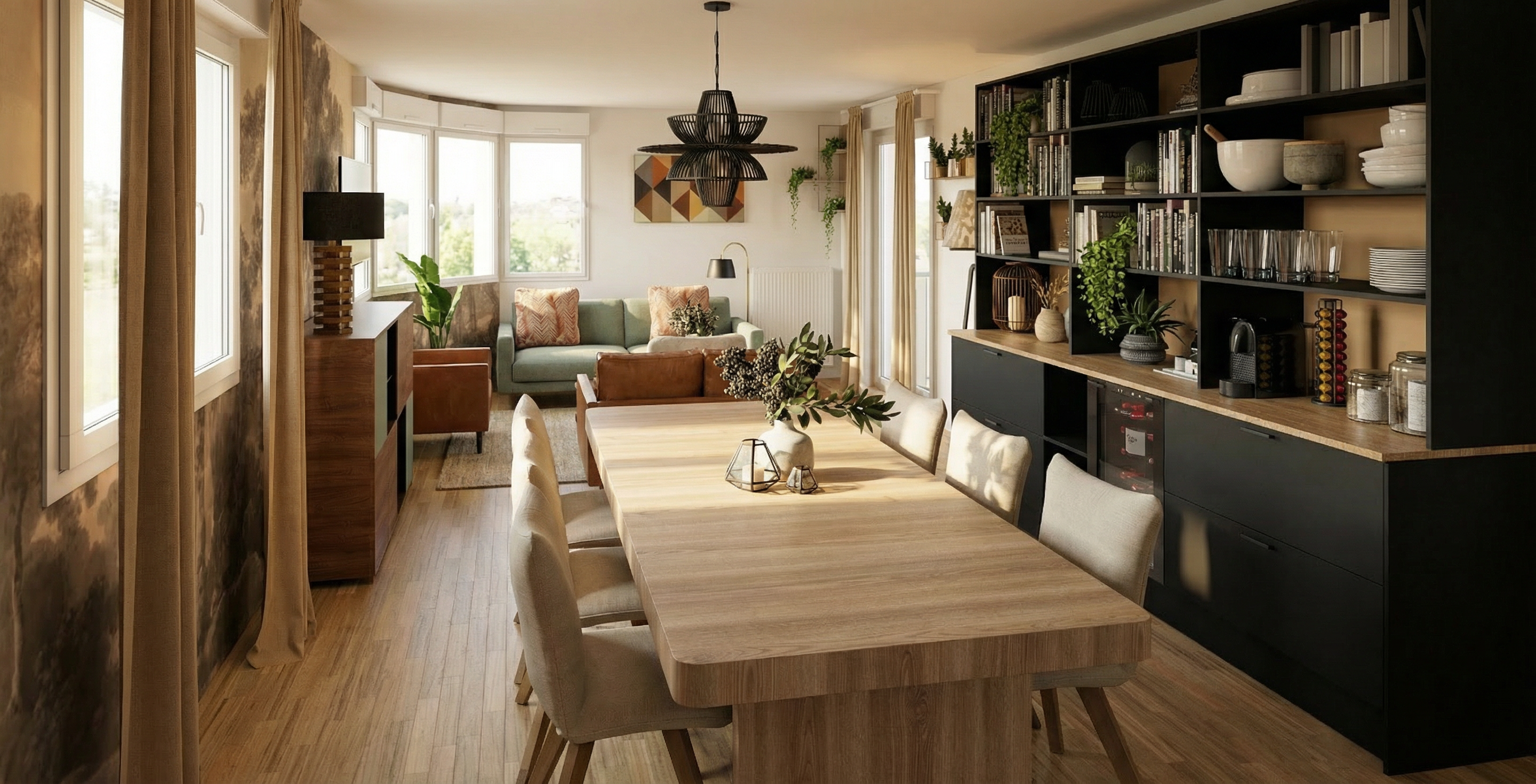 modern three story building with sleek minimalist architecture use soft white for the building exterior contrasting with dark grey accents on the windows and perforated panels highlight the balconies with transparent glass railings the ground features a textured light grey surface complemented by lush green spaces and a brown wooden gate the sky is a vivid clear blue with soft fluffy clouds capture a serene contemporary atmosphere with natural lighting