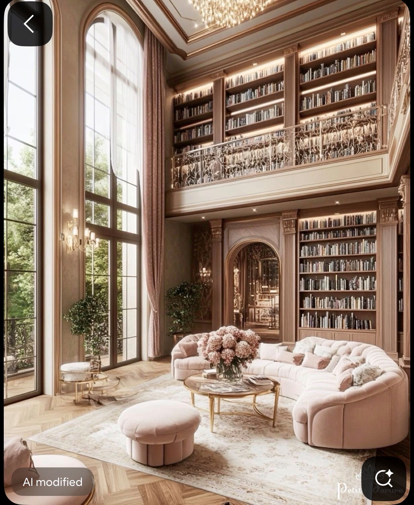 exterior shot make a library with a loft