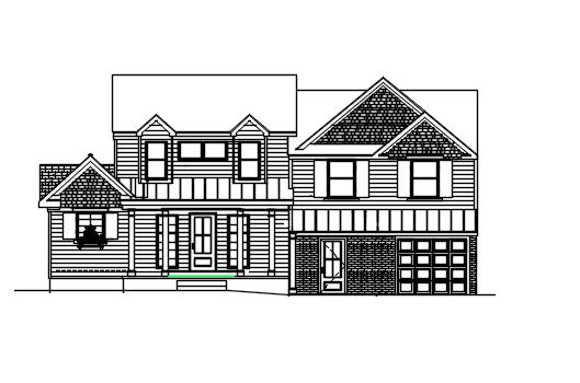 gray roof white siding sage green trim oak garage and entry doors architecture