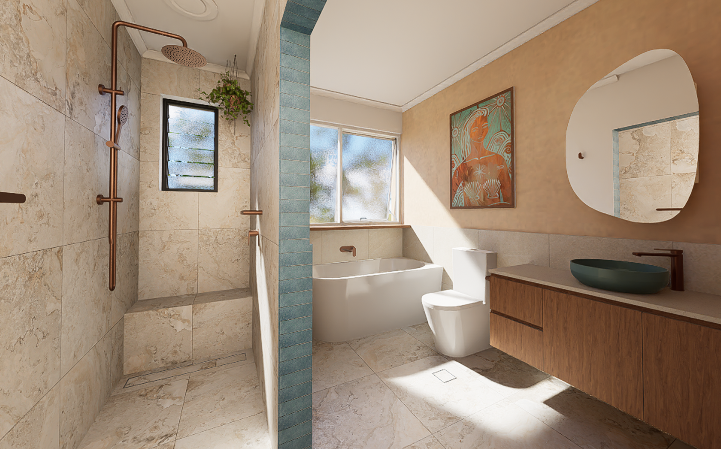 realistically render the photo add styling with some plants everywhere with some costal vibes