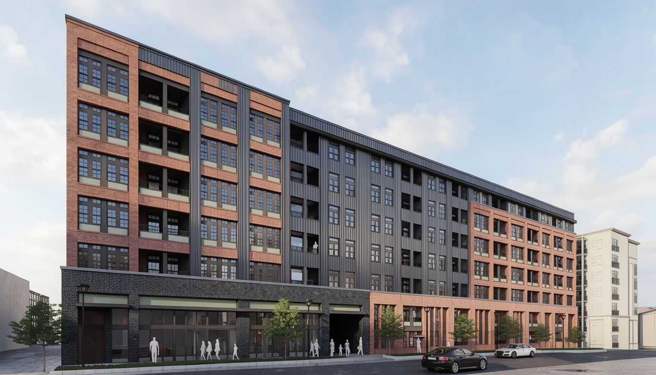 black and dark brown roof shingles off white brick dark brown paint black window sills black shudders in the mountains