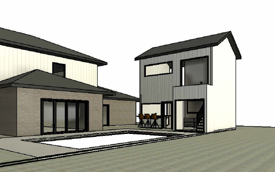 backyard on a warm sunny day with grass around a pool with trees in the background