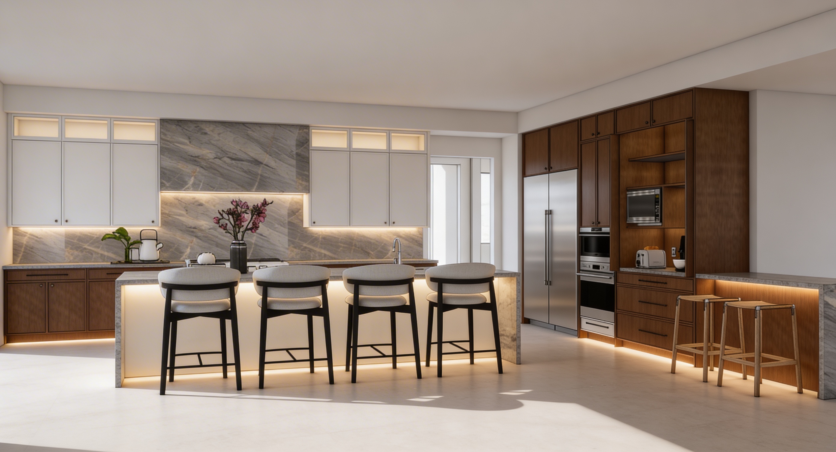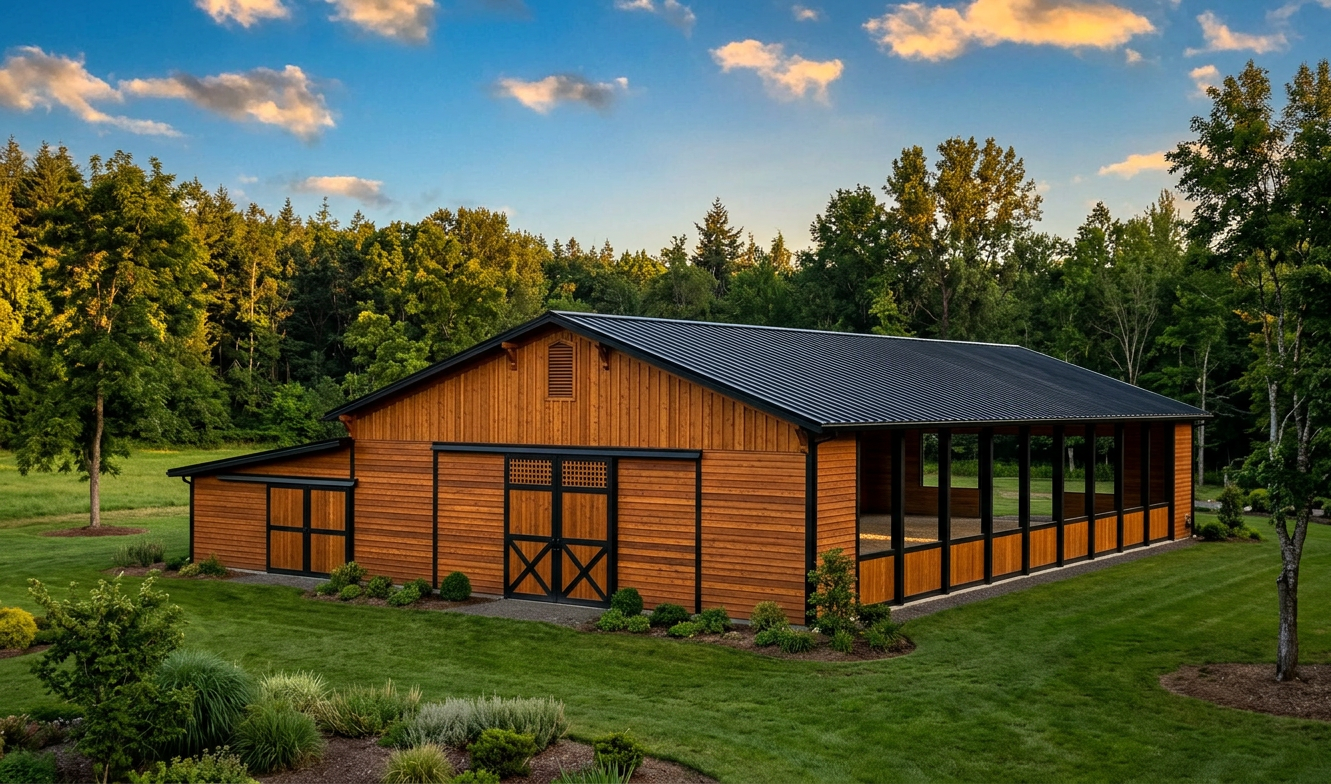white panel siding black fascia woodtone bellyband door is glass with black trim wood soffit