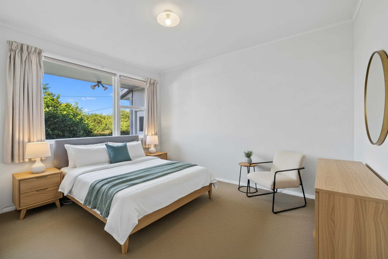 do not change features of room don t add too much furniture don t add anything that isn t there like power sockets do not change or remove stains on carpets bed against wall