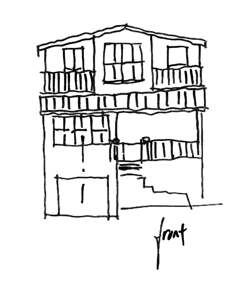 add dark grey shingles to this front elevation of a home keep all windows balconies stairs railings etc in the right place architecture
