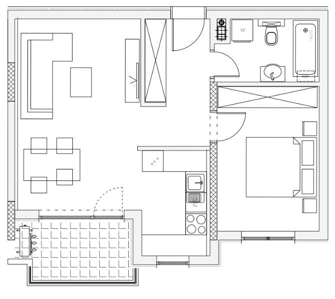 convert the provided 2d architectural floor plan into a highly accurate 3d apartment visualization critical instructions do not violate preserve exact geometry from the floor plan do not change layout proportions wall thicknesses or room sizes do not add remove or reinterpret architectural elements every wall door window and opening must match the plan precisely furniture must only be placed if clearly defined in the plan do not redesign interior or improvise layout this is a translation task from 2d to 3d not a design task spatial parameters floor to ceiling height 2 8 meters wall thickness follow drawing exactly and make the cross section gray door and window positions exact placement from plan output type top down 3d floor plan bird s eye view slight perspective like real estate visualization visual style neutral realistic materials light wood flooring white walls minimal textures soft global illumination natural daylight evenly distributed clean readable composition render quality photorealistic sharp details realistic shadows and reflections balanced exposure camera top view with slight angle negative constraints no artistic reinterpretation no layout changes no added decorative elements not present in plan no unrealistic proportions no random furniture no stylization that reduces clarity of the plan the result must look like a precise built version of the provided floor plan not a conceptual interpretation