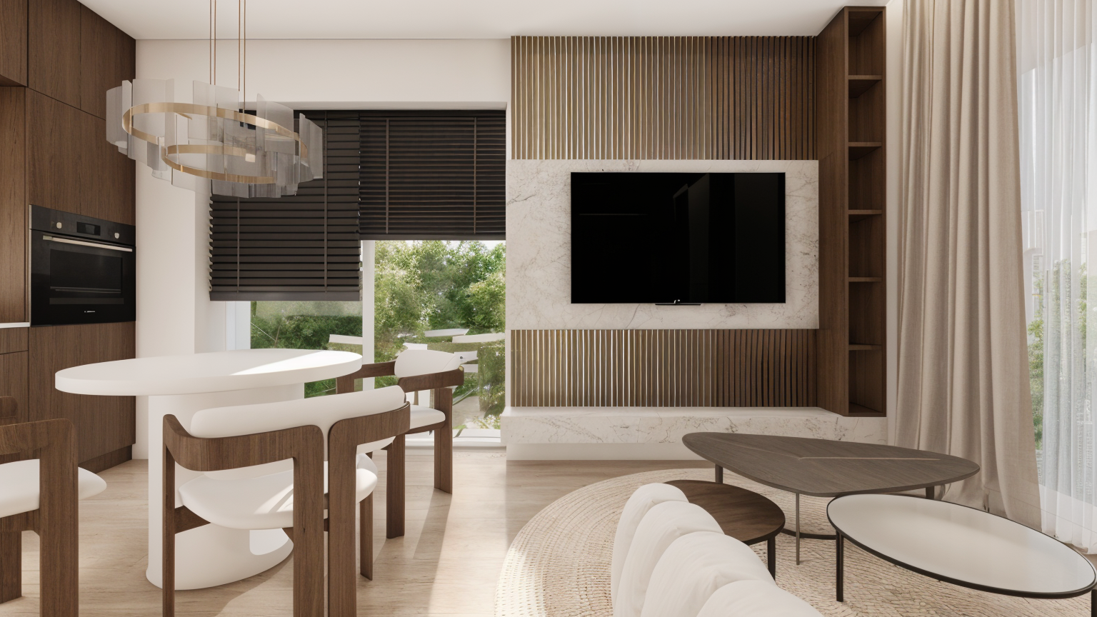 minimalism exterior shot without changing the geometry 1 overall style and form modern minimalist architecture continues to dominate with strong geometric forms a flat roofline and clean horizontal and vertical alignment the three tier composition remains with the top volume set back for a stepped layered effect 2 material and texture details cladding dark gray fiber cement boards and black vertical louvers in metal is consistent and adding texture and shadow glazing full height dark gray glass with a slight bronze tinted transparency this enhances the warm luxurious feel during daytime in general keep the dark shaded areas as large glazing panels sometime behind the vertical louvers and consider all areas behind louvers as dark black glass showing furniture behind curtains shading devices light sheer curtains are visible behind the glazing softening the fa ade and adding depth 3 ground floor functional elements garage the two futuristic cars placed in front signal that this area may be an integrated carport or covered parking bay supported by the overhang entryway the glazed double height space to the left of center with a staircase visible inside likely marks the main entrance and vertical circulation 4 landscape site integration the scene includes a manicured front lawn with sparse trees and shrubbery suggesting a minimalist landscaping approach aligned with the architecture no visible fence or boundary elements are shown enhancing the openness and flow to the surrounding context architecture
