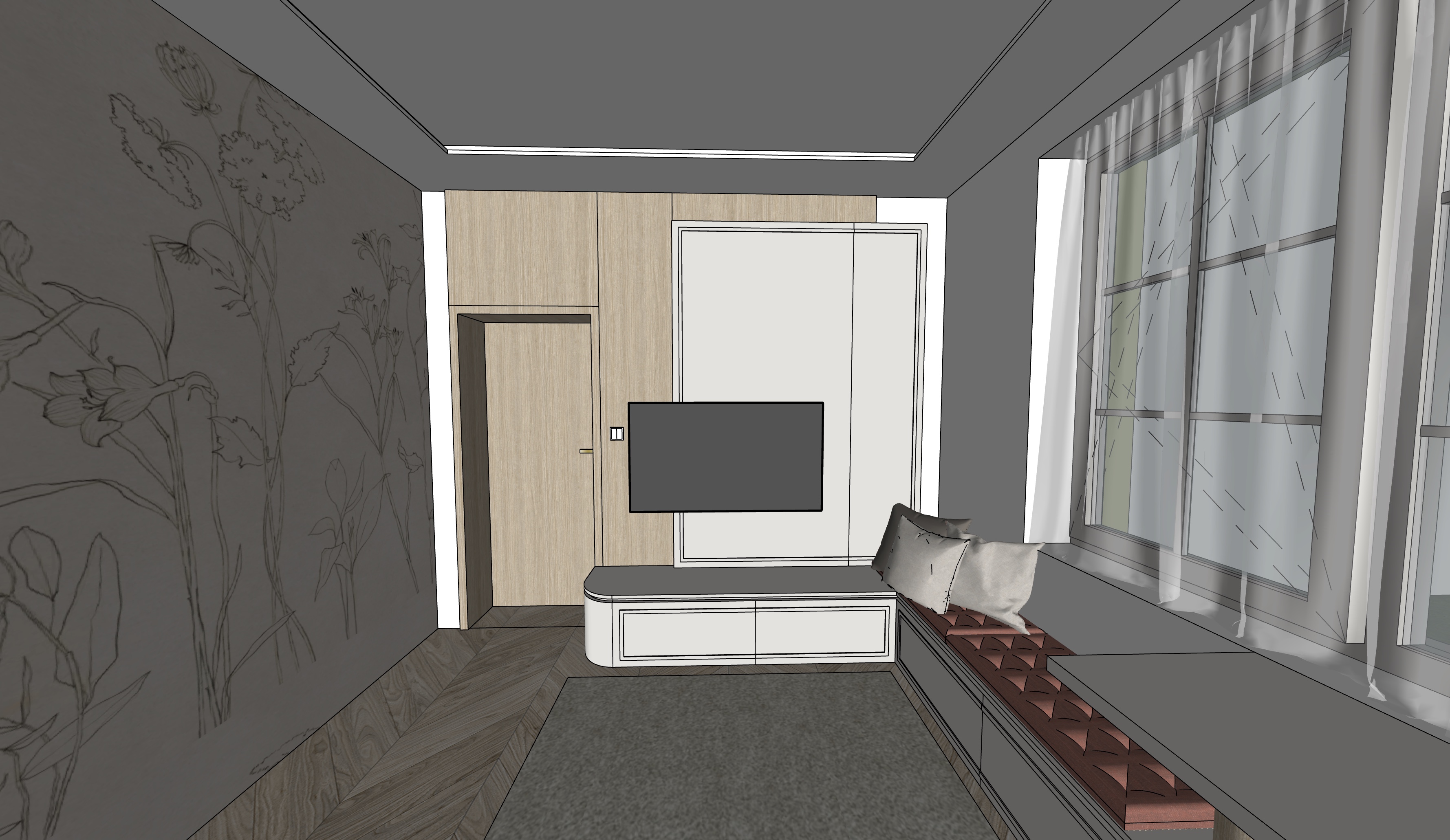 the carpet is light grey viscose the orange upholstered sofa is a fabric not a leather add dimmed led light in the ceiling