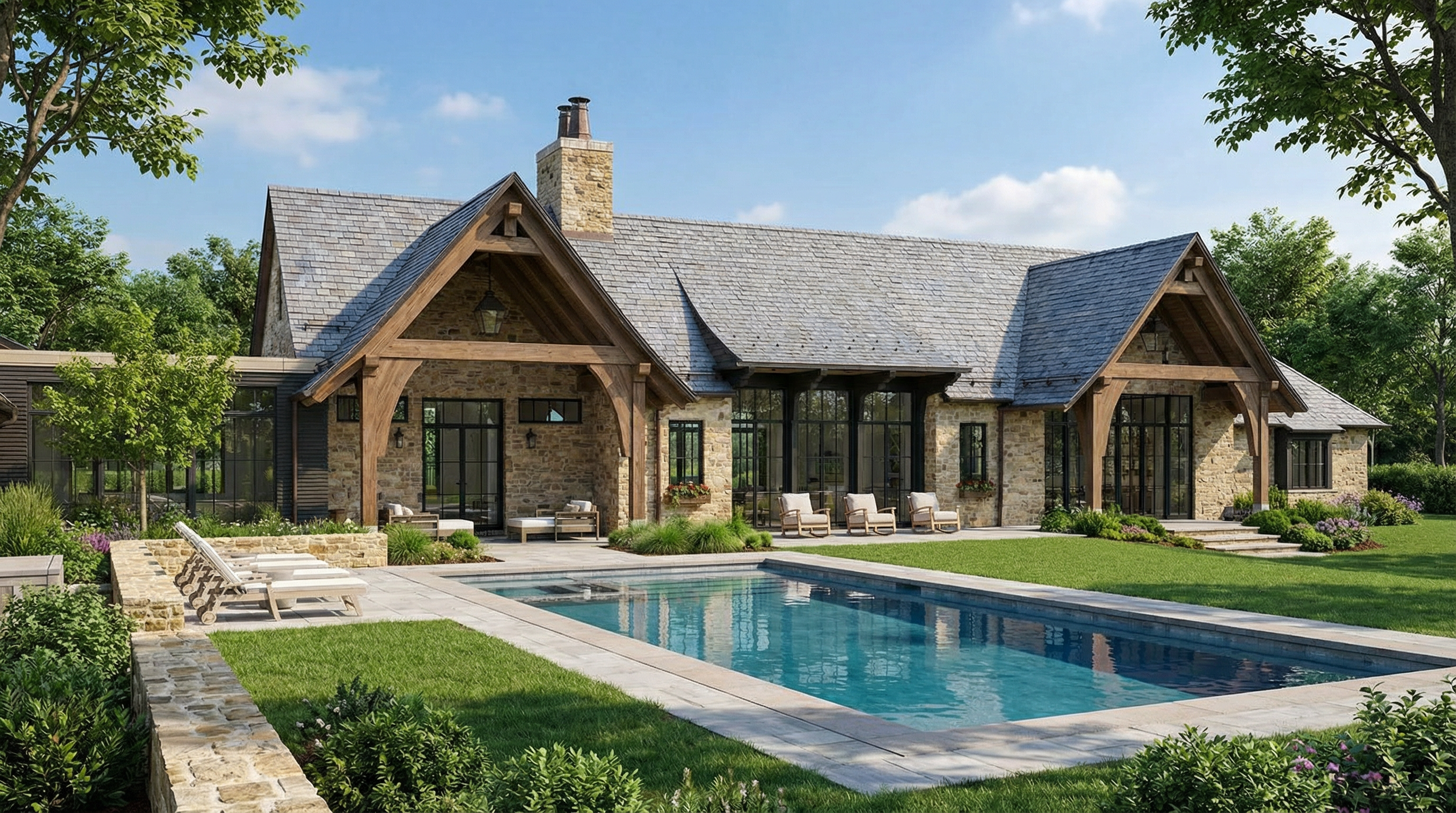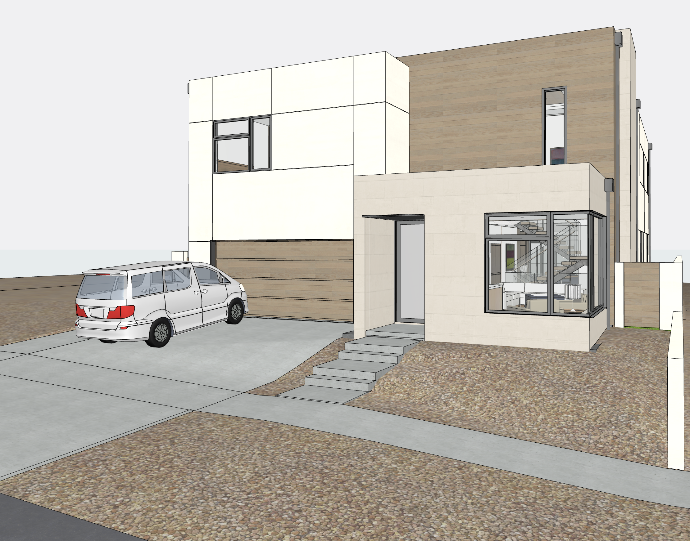 clean modern house golden hour sky do not change any of the architecture at all nobu aesthetic natural landscape in front yard
