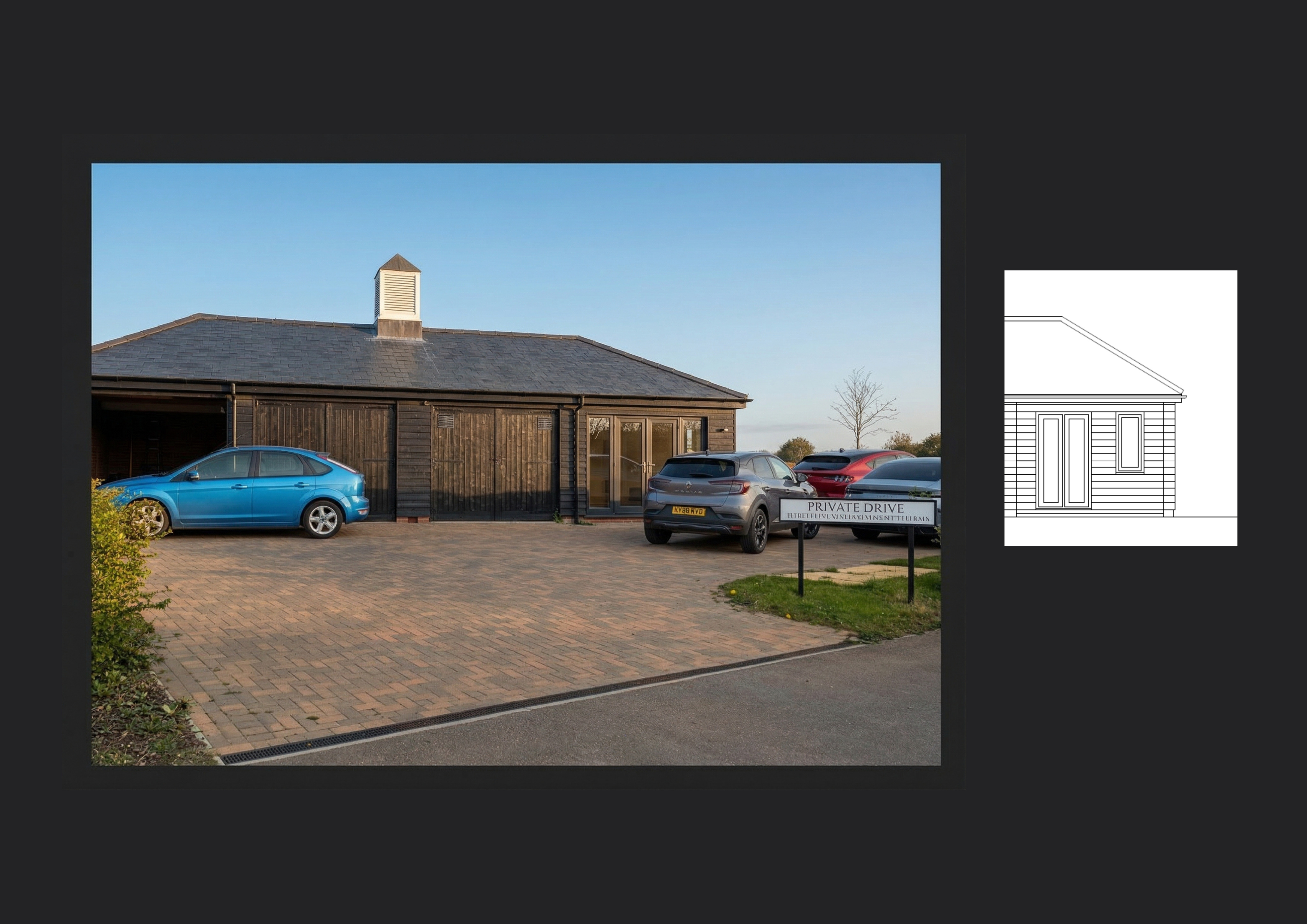 change the glazed doors to narrower glazed doors with 2 panes then cladding and 1 window keeping everything else exactly the same as the source image