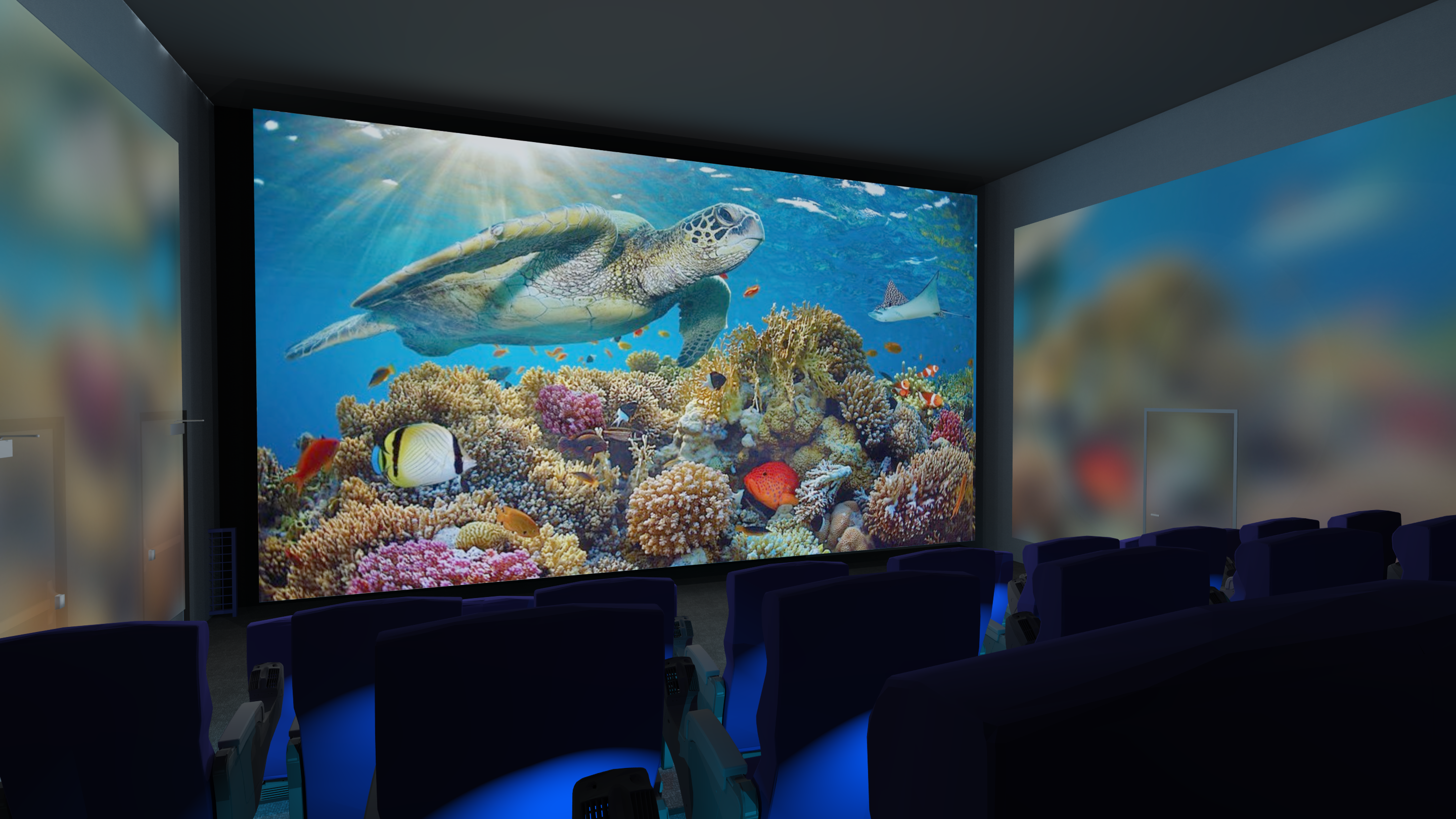 imagine prompt existing cinema interior render immersive theater with tiered seating plush velvet chairs acoustic wall panels subtle led aisle lights large projection screen contemporary auditorium environment dramatic cinematic mood rich enveloping atmosphere low key lighting screen glow soft highlights deep shadows global illumination photorealism style photographs of interior luxurious immersive precise ultra detailed 8k photorealistic cinematic moody wide angle perspective full frame dslr 20mm lens evening low light architectural photography kodak vision3 film hyper realistic volumetric lighting ar 3 2 s 540 c 18 q 2 v5
