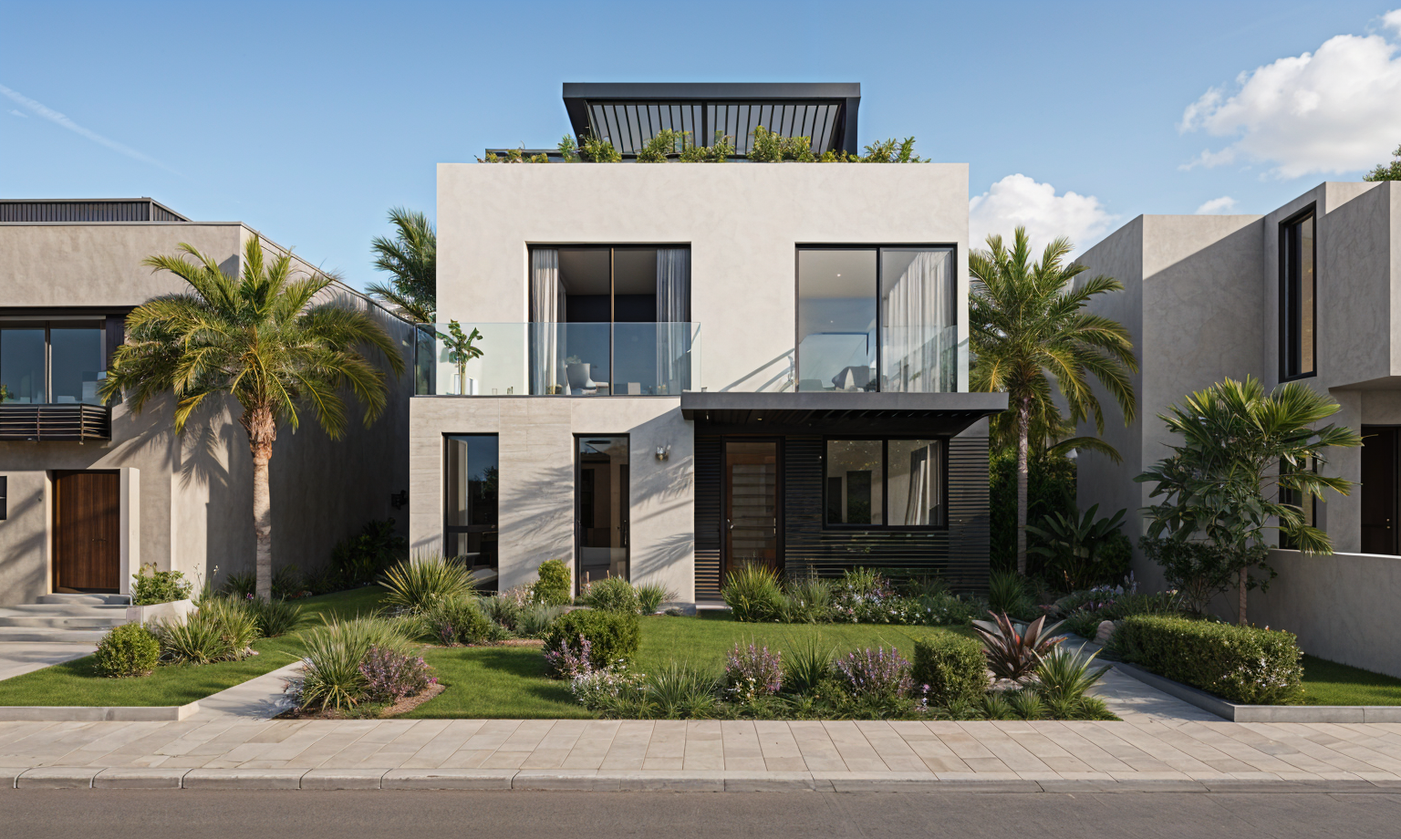 a mountain scape high end subdivision with an acre of property the lot is sloped from the back of the lot towards the front and has a retaining wall out both side of the house house materials are a grayish wood black siding natural stone windows doors and garage doors are black driveway is out from the garage doors the door on the bottom far right is also a garage door