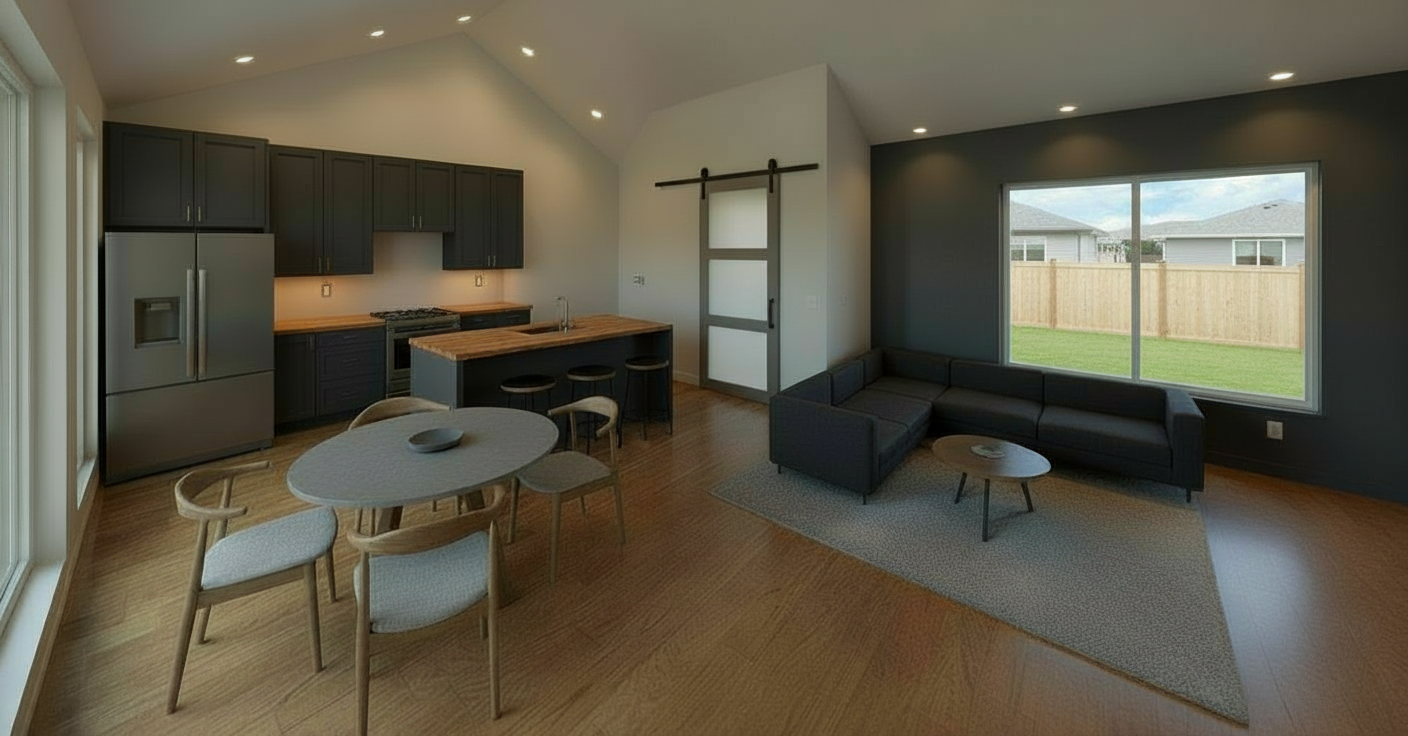 change the barn door to the style attached remove the recessed light in the peak of the ceiling
