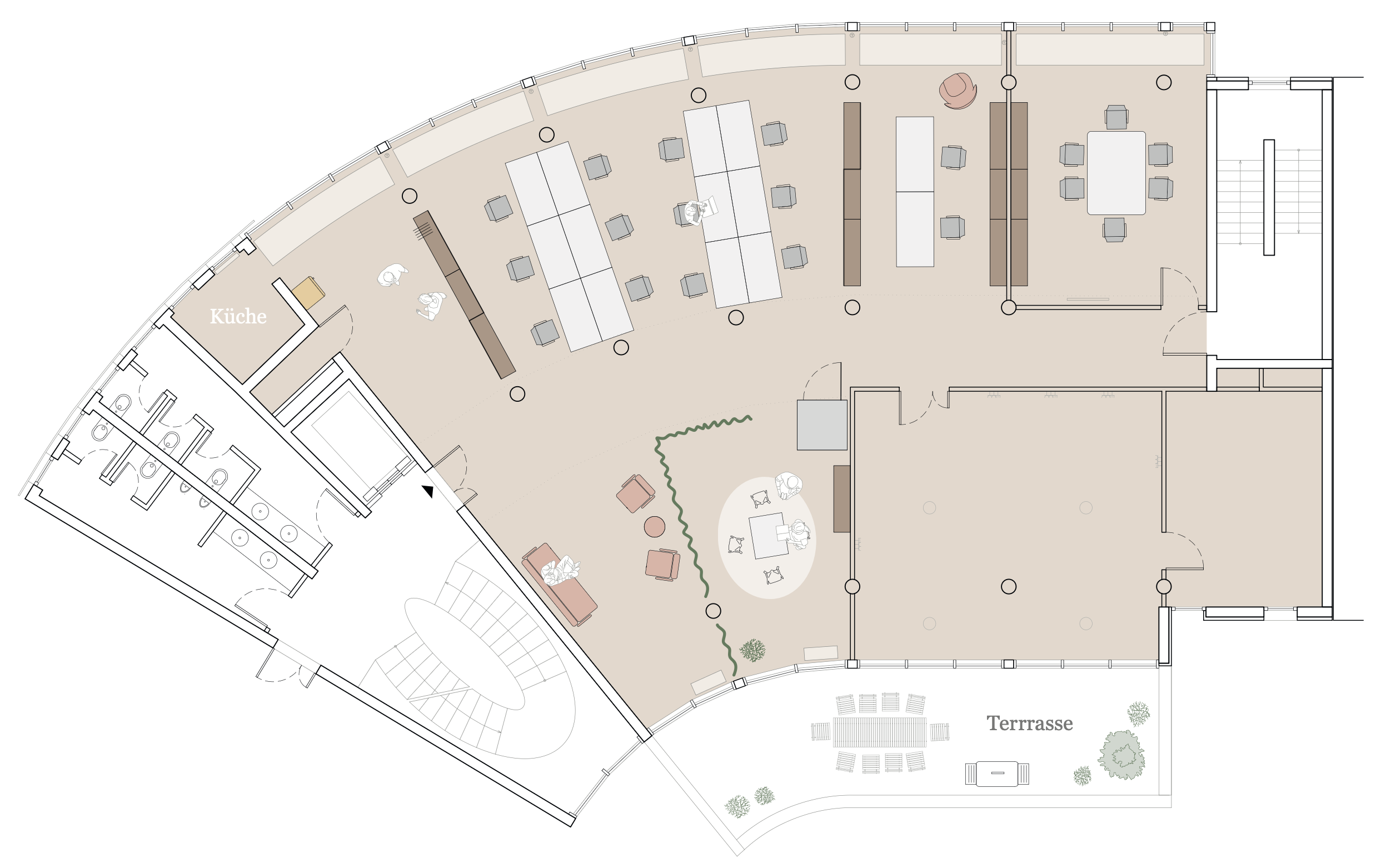 convert this floor plan into a minimalist isometric 3d view of a office show the space from an elevated angle with furniture walls and details visible use the same furniture as shows on the plan do not change the orientation of the floorplan