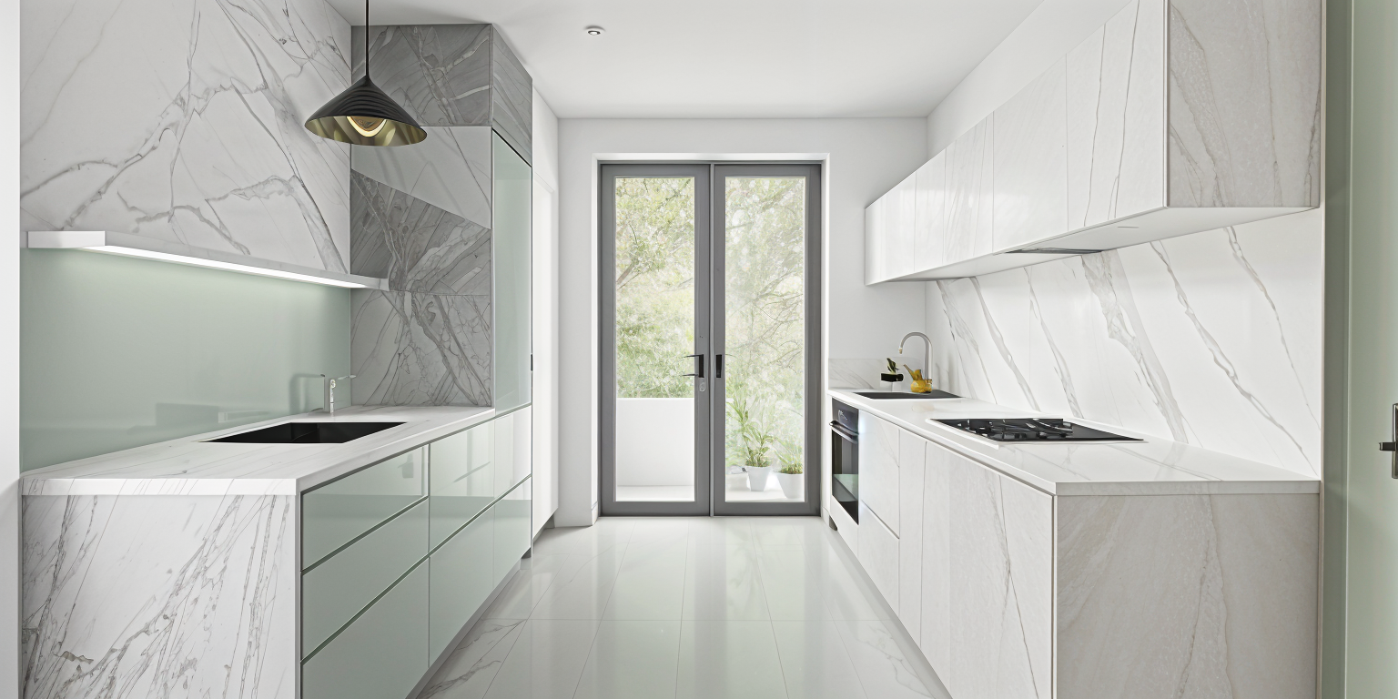 photo image of this kitchen with cashmere panels and calcutta gold stone worktop splashback and island white sink with brass tap on island and siemens hob on counter with siemens wall oven
