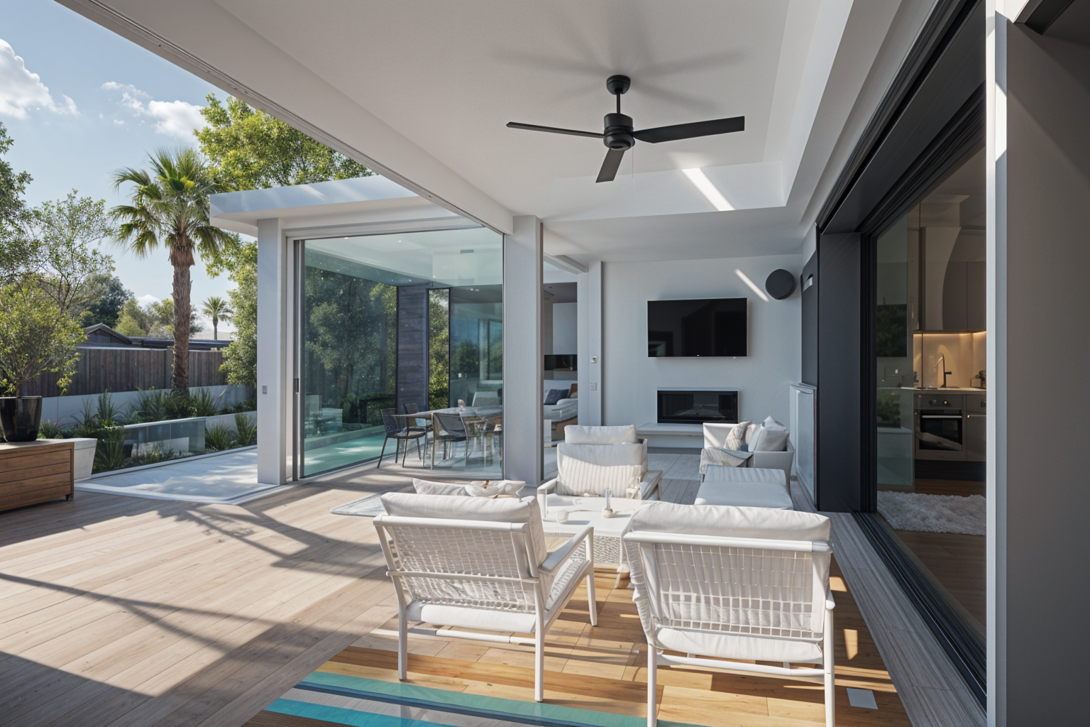 richard rogers exterior shot modern exterior shot modern exterior shot modern exterior shot black and concrete buildings with black roofs rectangular pool and fire pit in center black fences lush tropical greenery in background grass and smooth porcelain floor architecture architecture architecture