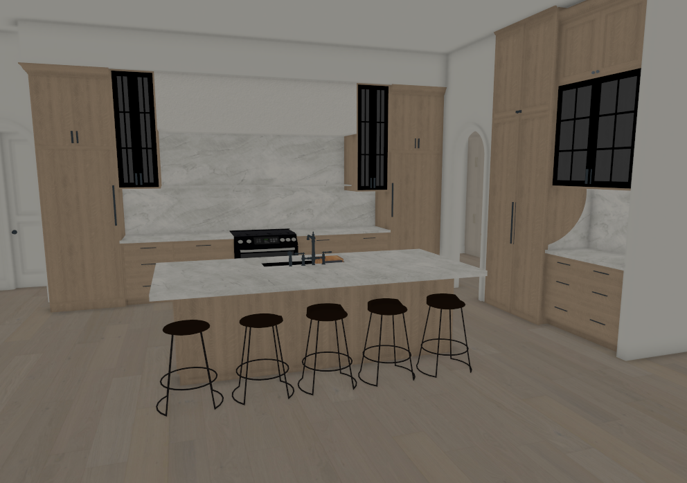 white oak cabinets add nature outside windows hyper realistic keep materials and design details the exact same as photo