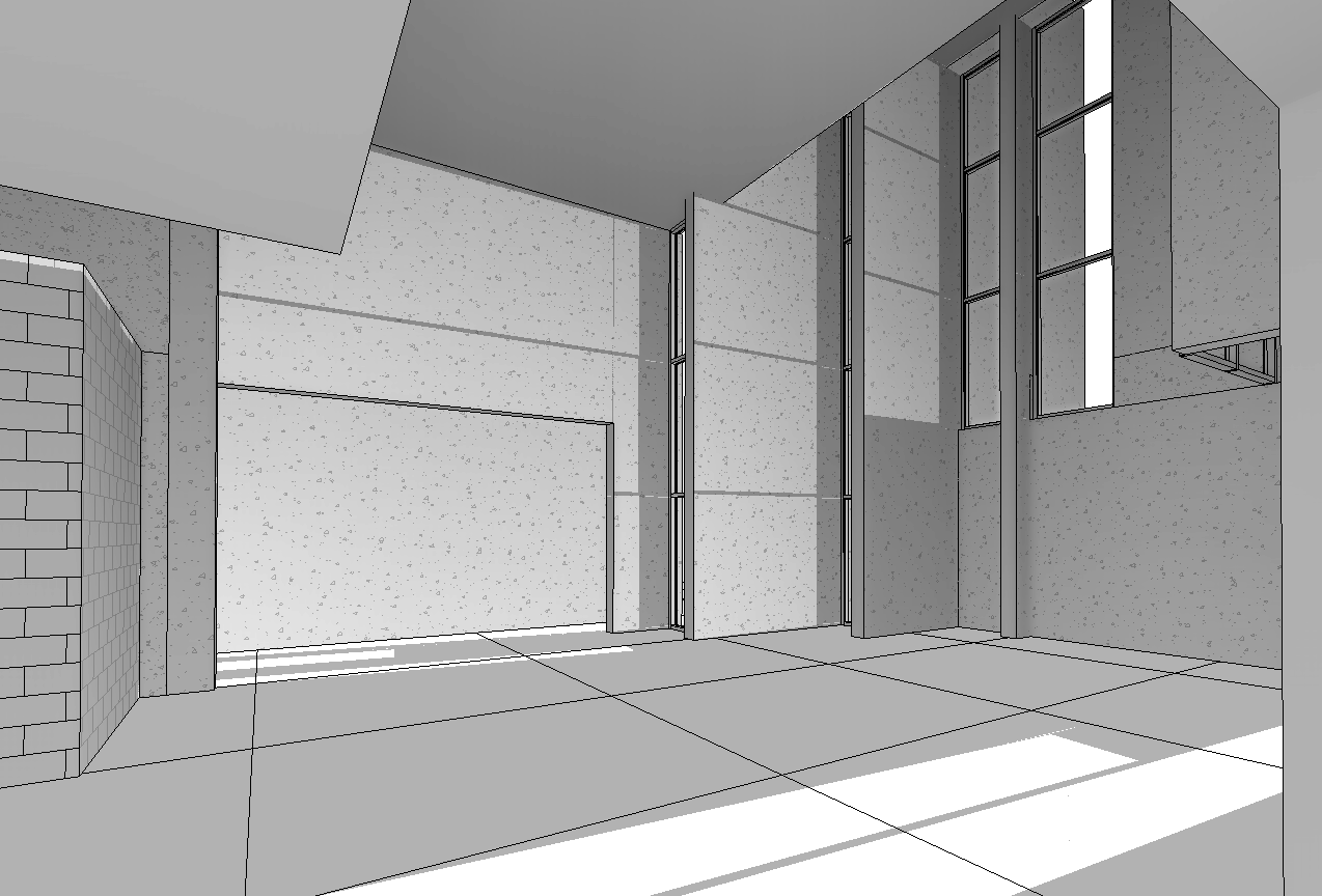 depict this as an interior atrium for a contemporary art museum with large windows and lots of light light wood floors