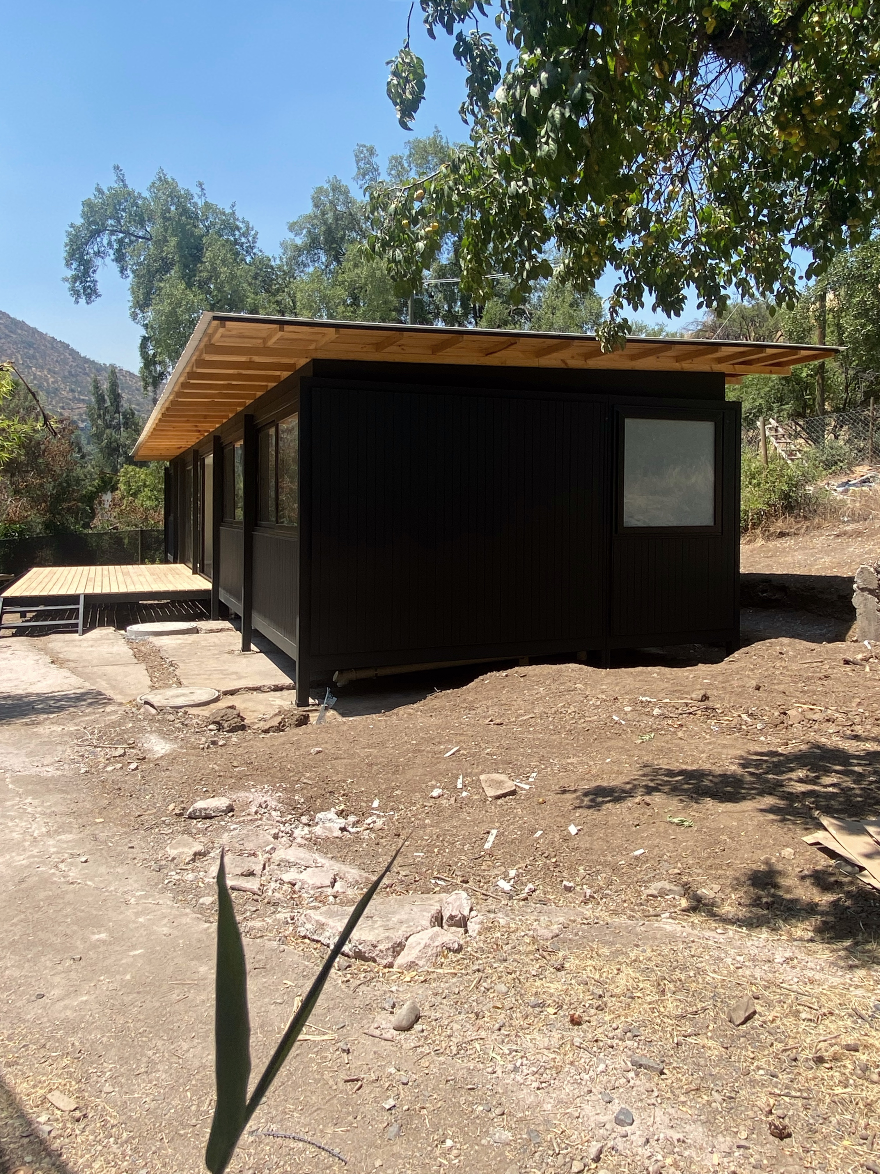 objective maintain the existing construction this is the final project and must not be modified while improving the surrounding environment which is currently affected by construction damage the intention is to show the site as if time has passed mature vegetation a consolidated landscape and no construction debris general instructions do not change the camera angle or point of view do not modify the geometry of the existing building specific guidelines keep the construction exactly as it is design volumes materials proportions preserve the surrounding hills and large existing trees remove the electrical cable from the scene landscape emphasis foreground and left side of the image dry garden with natural informal composition use gravel or compacted soil native style plants and stepping stones huellas vegetation should look grown and established right side next to the house not in front a path integrated into the cut of the hill made of small stone pavers adoquines along this path add a linear planter with dense clusters of dry garden vegetation plant palette dry climate plants such as grasses fountain grass foxtail and similar species with a few casually placed stones overall look should be natural restrained and low maintenance atmosphere style scandinavian landscape and architectural aesthetic architectural photography look soft balanced natural light clean shadows high realism calm timeless mood emphasizing materiality and landscape integration