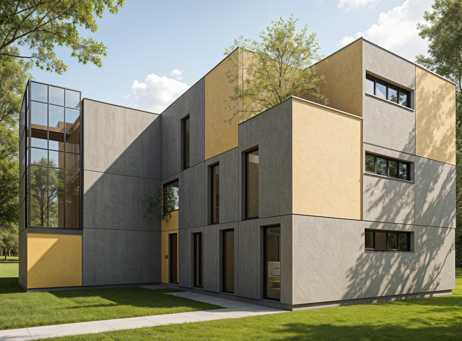 modernist exterior shot improve facade materials make it more white and with light colors architecture