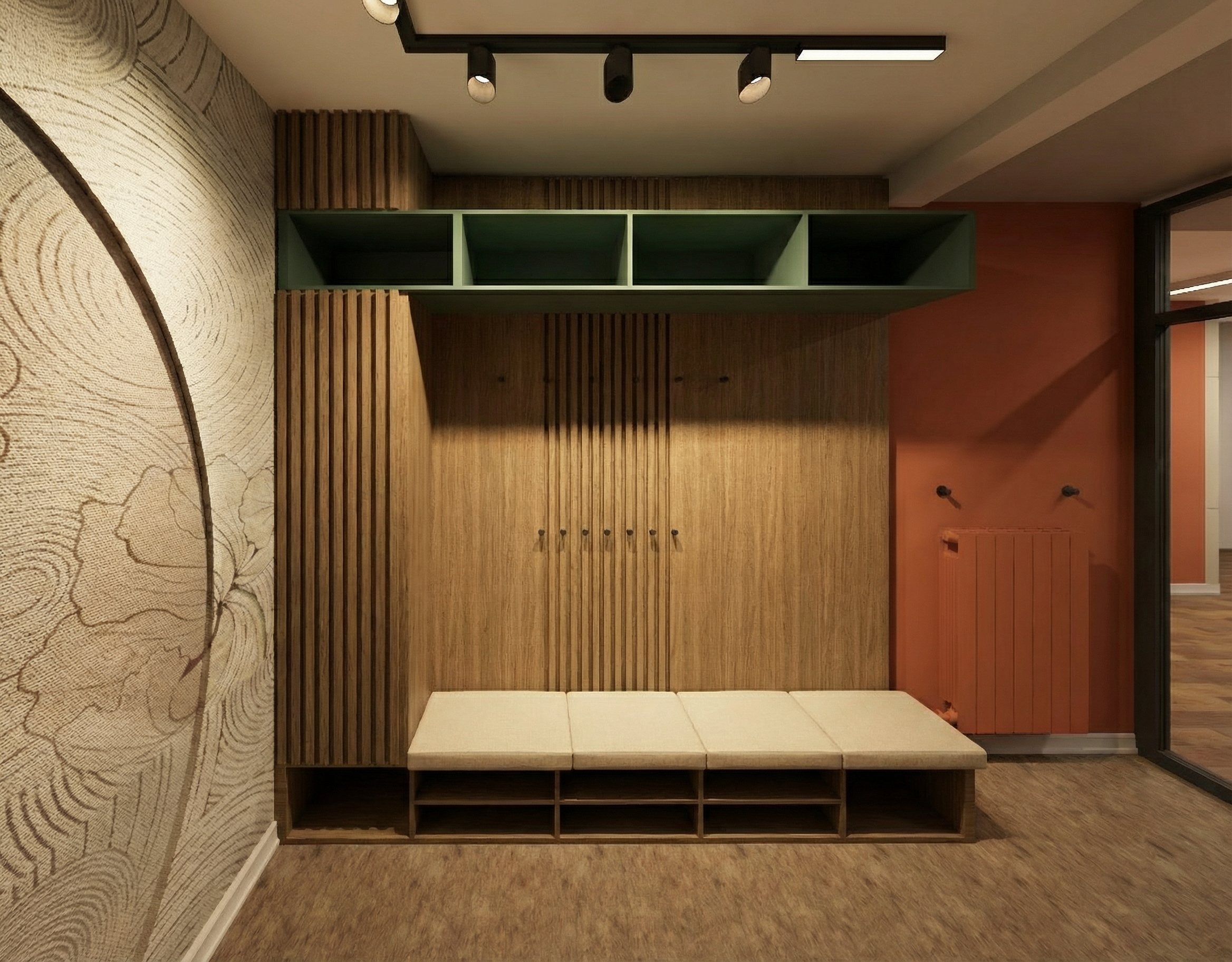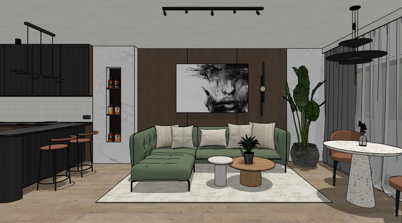 render this living room aqdd bookshelfs