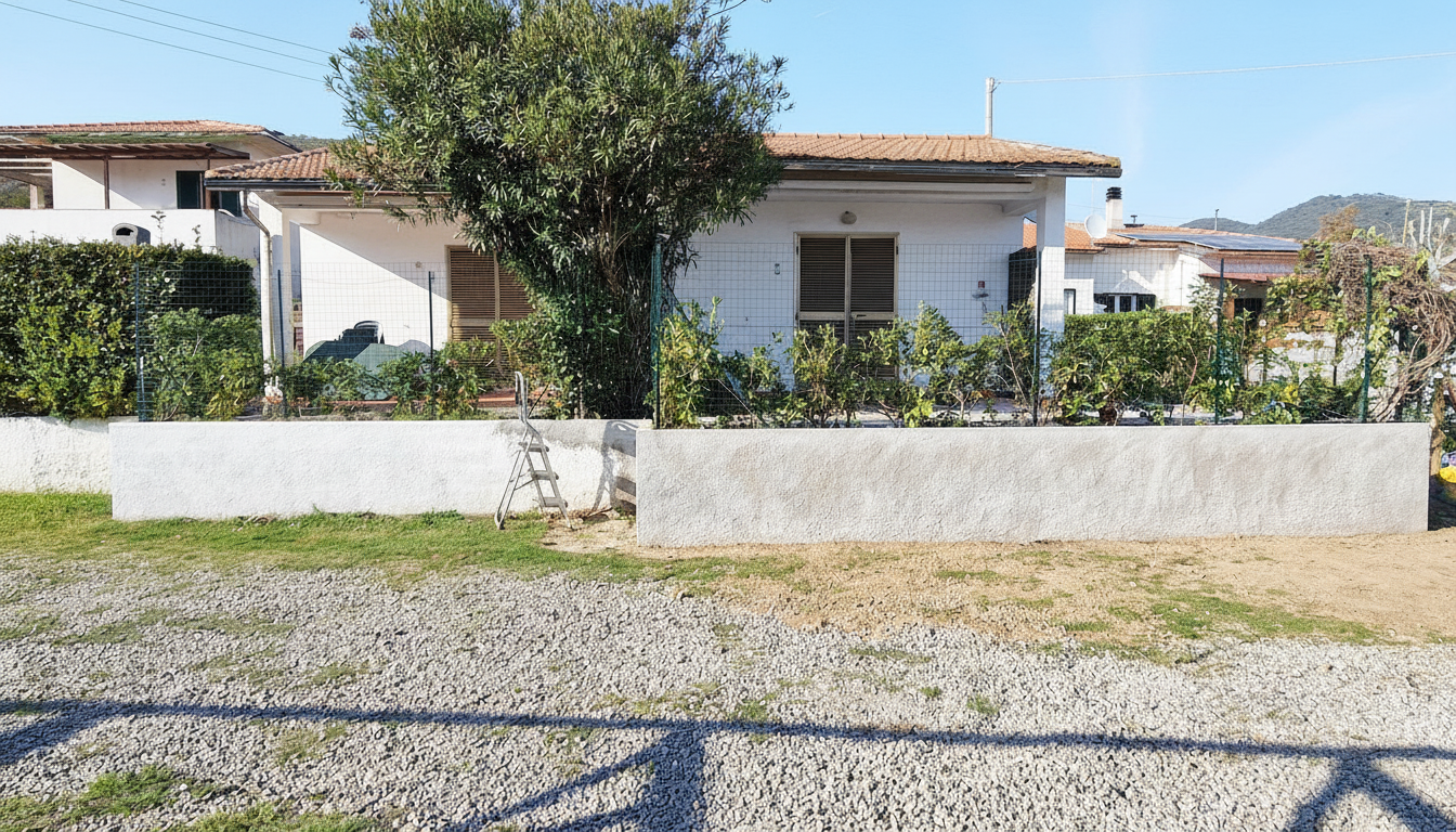 modernist exterior shot scene emphasizing its connection to the surrounding garden use the soft diffused light of early morning to create a peaceful and serene atmosphere architecture focus on the interplay of different materials the smooth finish of rendered concrete walls contrasts with the rough texture of natural stone accents stone would only be at the base not half way up also no stucco any higher finish should be a board and batt or horizontal siding thats larger and high end no vinyl do not change the basic structure of the provided image in terms of feature elements garage door remains and should be a modern style door that blends with the overall style landscaping showcase a multi layered garden with a variety of textures and colors hydrangeas lavender and hostas provide vibrant pops of color against the neutral background a meandering gravel path leads to a secluded seating area under a pergola in front of the garage door is a driveway no patio on the side landscaping will be on the sides pool and patio are in the background aesthetics embrace a minimalist aesthetic with clean lines and simple forms the color palette should be muted and calming pale greys soft greens and natural wood tones architecture
