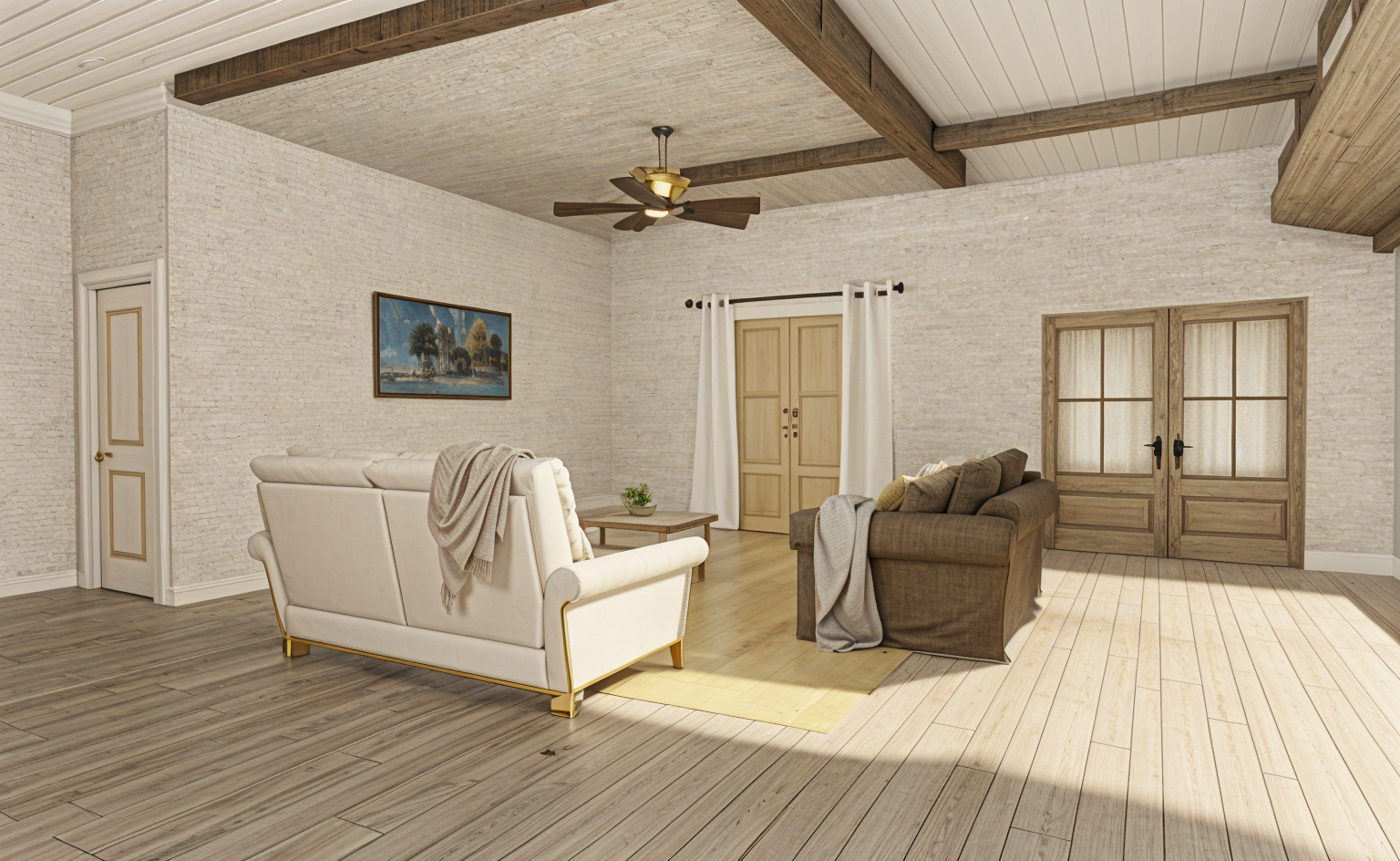 interior shot update the flooring to be wide plank white oak wood flooring and change the faucet hardware to nickel finish