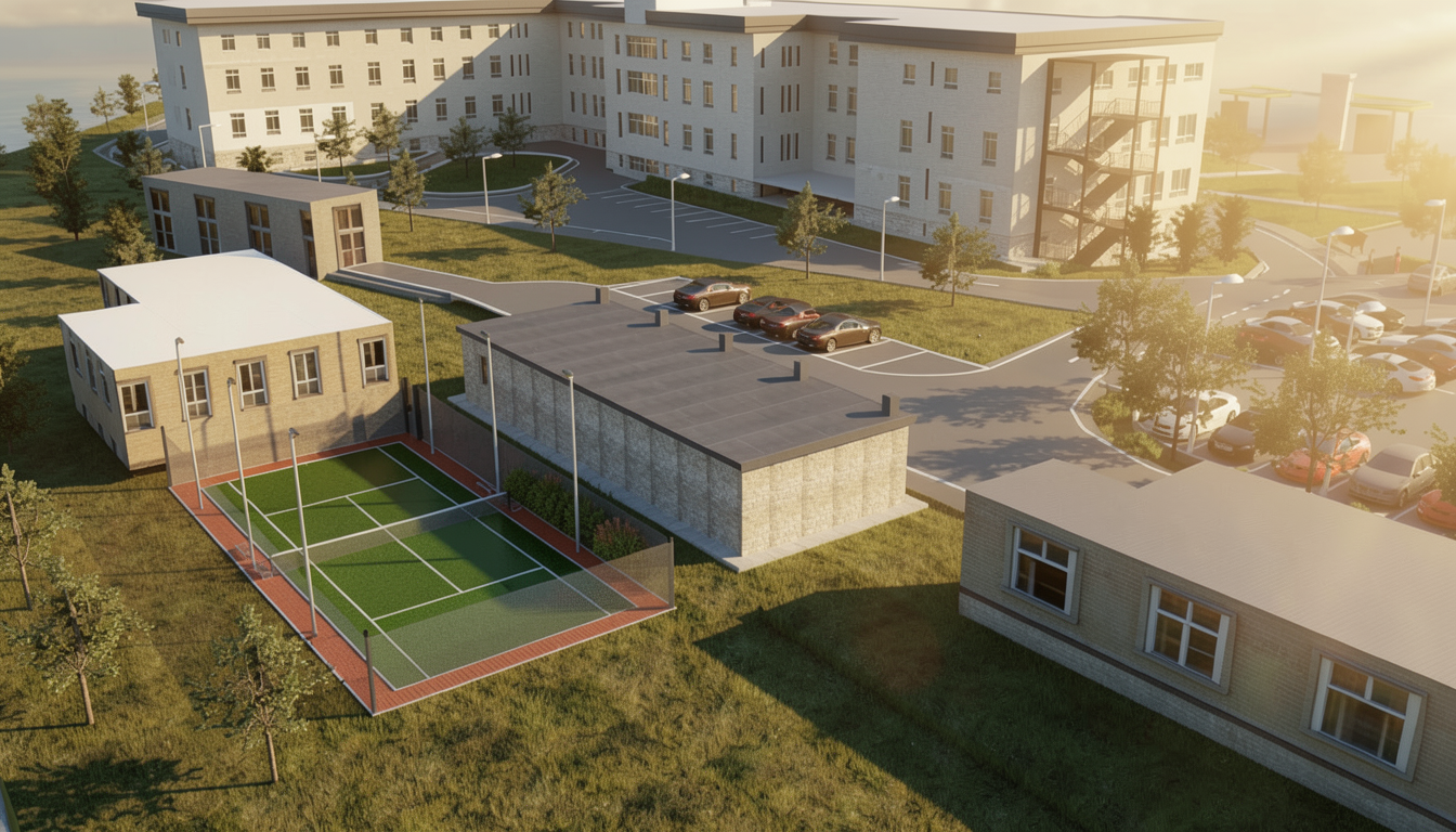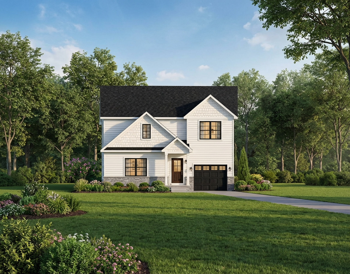 add wood clad addition as seen in reference image keeping dark fascia change siding of the rest of the house to horizontal ship lap not board and batten in the existing beige change soffits and gutter to match the beige change the roof color to a light gray