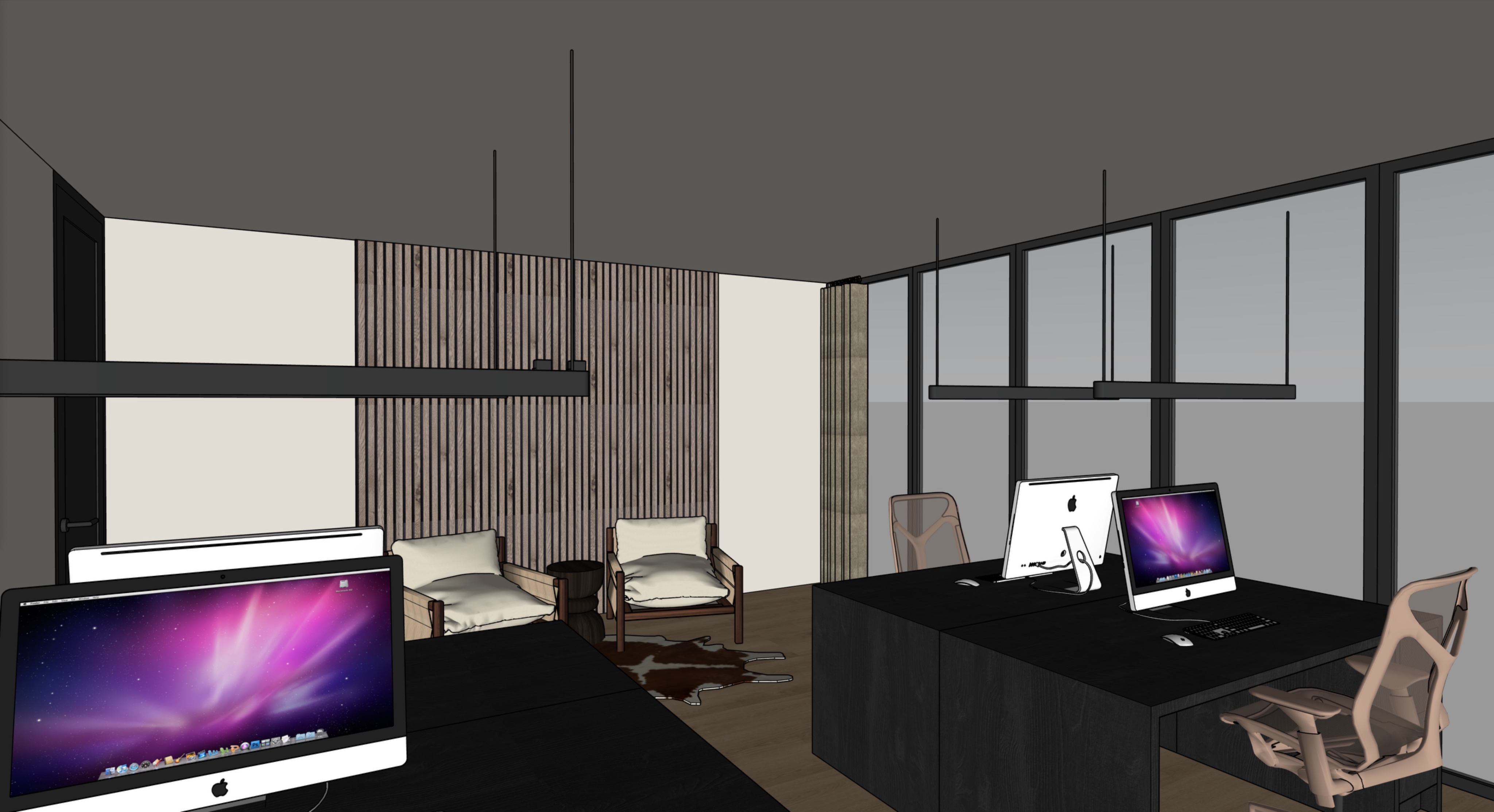 render of 3d model turn the lights on above the table natural light coming trough the windows on the right