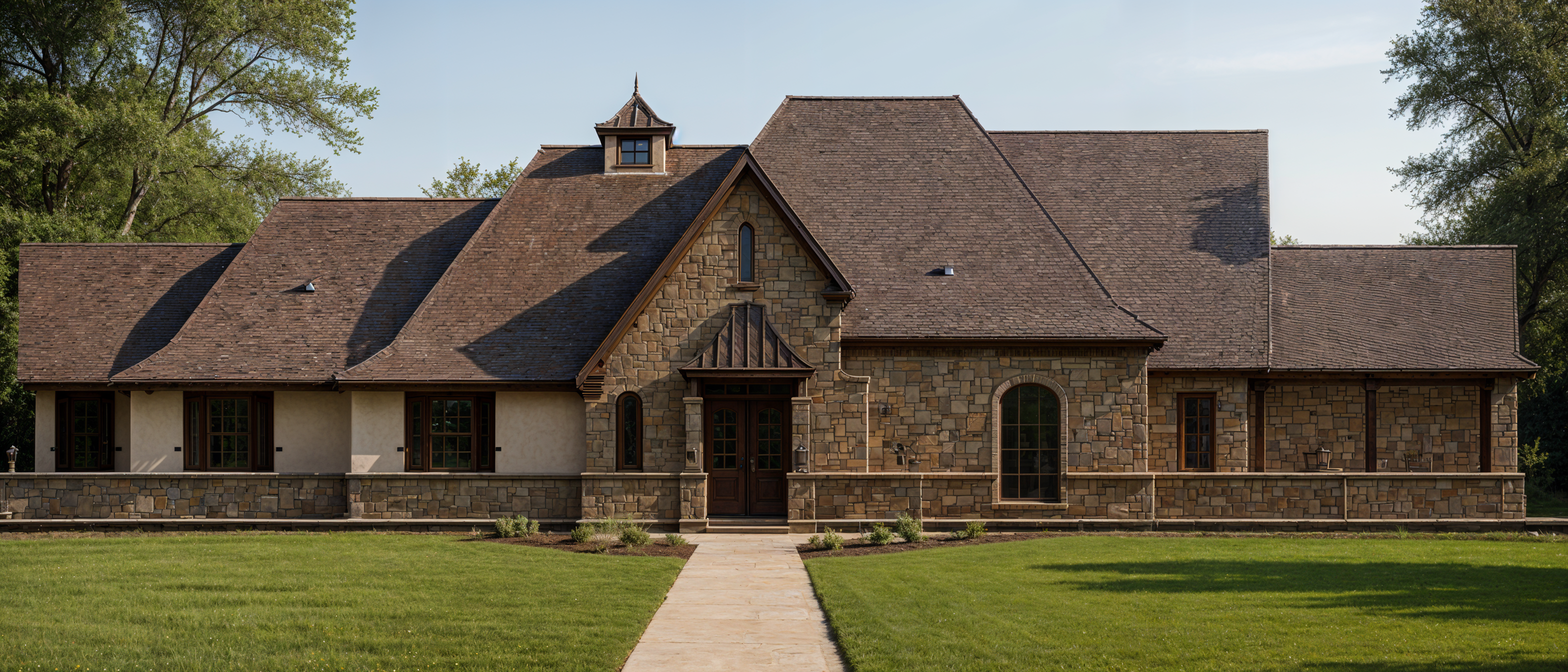 keep everything about this photo exactly the same but remove the shadow on the right hand gable roof do not change anything else